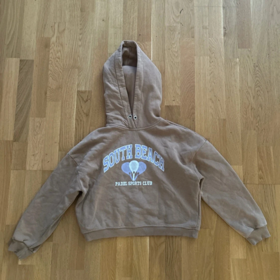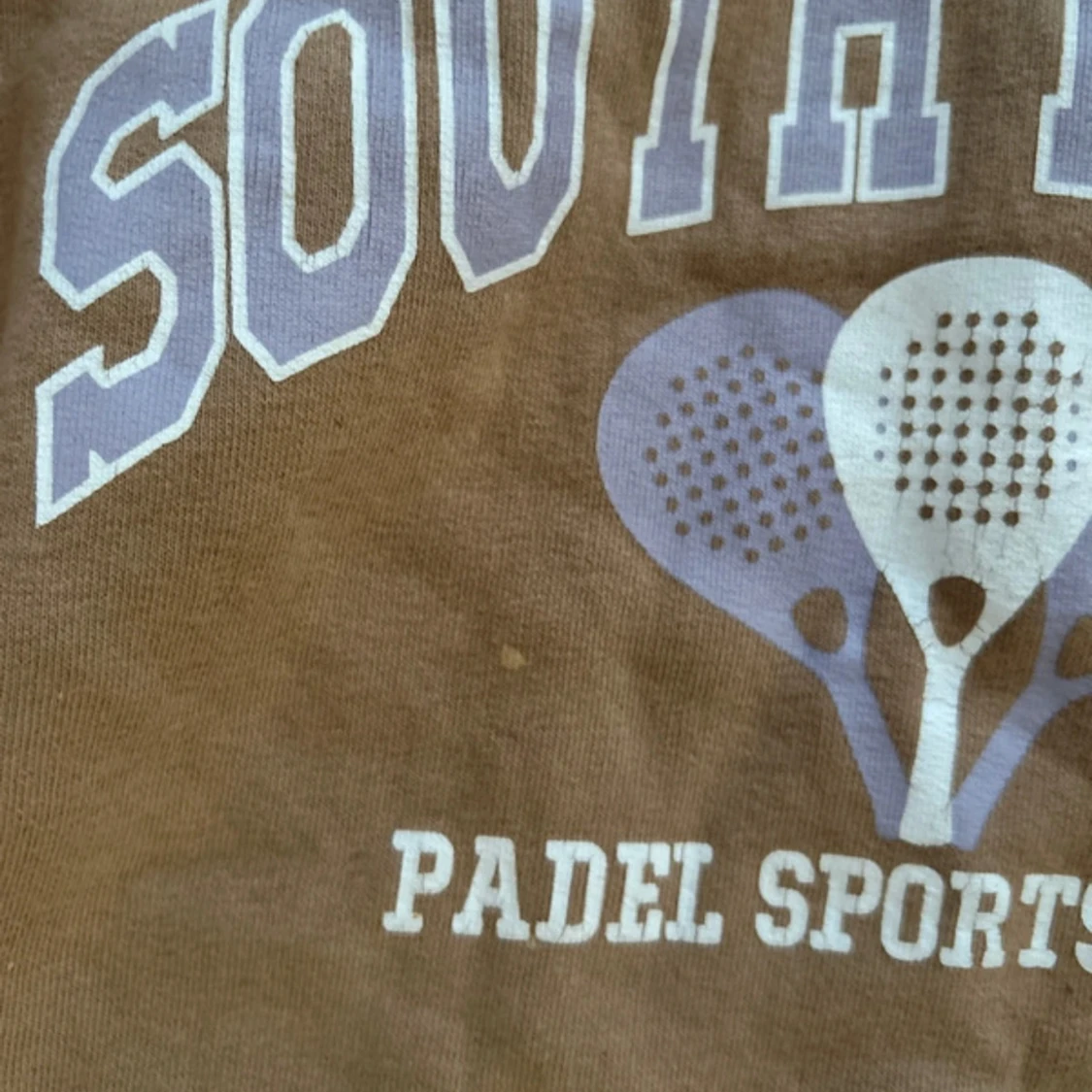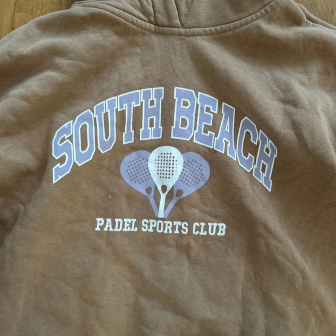 Brun hoodie från South Beach med tryck 'South Beach Padel Sports Club' och motiv av padelracketar i vitt och lila. Tröjan har huva, ribbade muddar och en avslappnad passform. Perfekt för dig som gillar sportig stil.