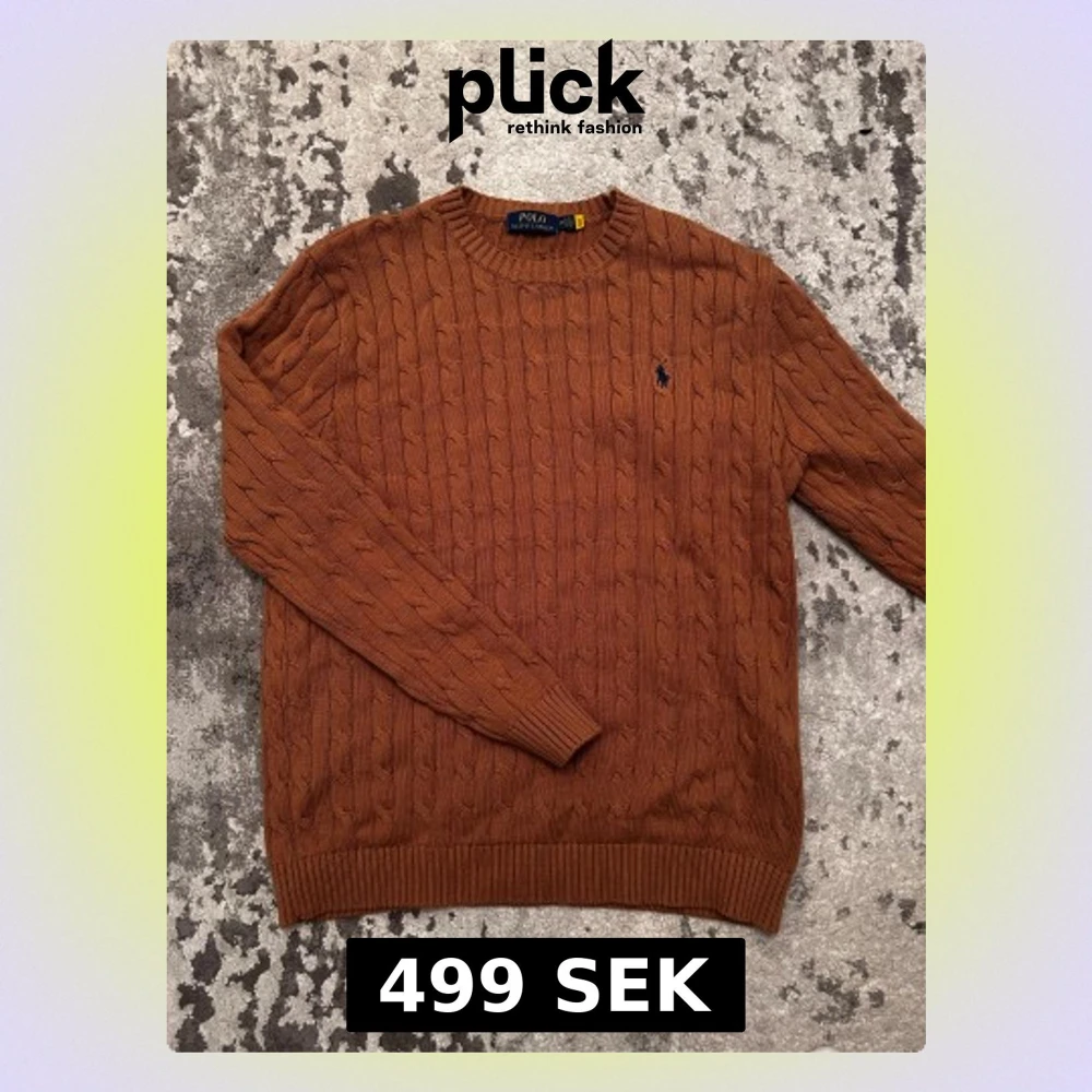 Snygg brun kabelstickad tröja från Polo Ralph Lauren i storlek M. Tröjan har rund hals, ribbade muddar och det klassiska broderade Polo-logot på bröstet. Perfekt för dig som gillar preppy stil och vill ha något som känns både chill och stilrent.