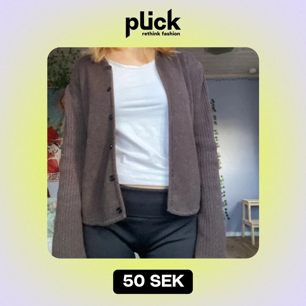Brun stickad kofta köpt secondhand. väldigt bra skick.