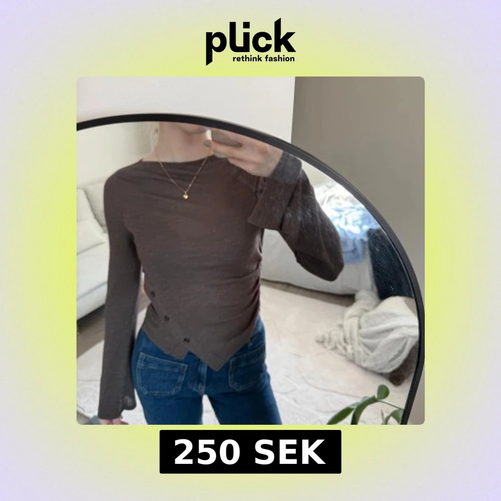 Säljer en brun långärmad topp från NA-KD med lätt utsvängda ärmslut och asymmetrisk nederkant. Tunn och mjuk i materialet, perfekt till jeans eller kjol. Enkel och stilren design.