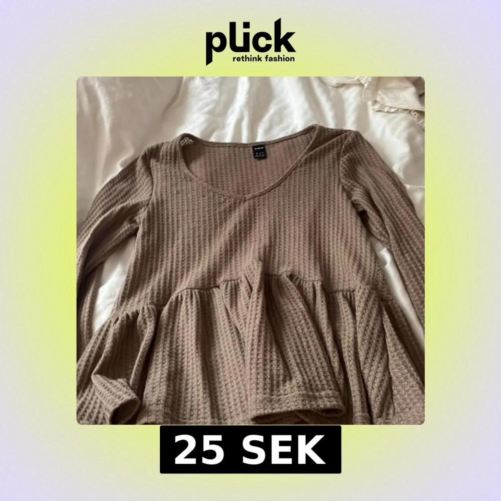 Säljer en brun långärmad topp från Shein med en vacker volangdetalj i midjan. Toppen har en ribbad textur och en rundad halsringning. Perfekt för en stilren och bekväm look.