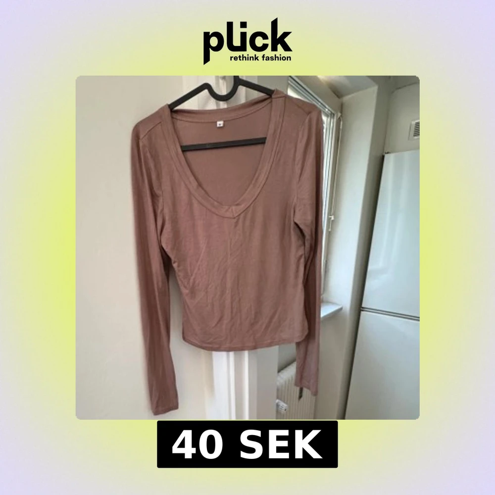 Säljer en stilren beige långärmad topp med v-ringning. Perfekt för en avslappnad look. Passar bra till jeans eller kjol. Hör av dig vid intresse!