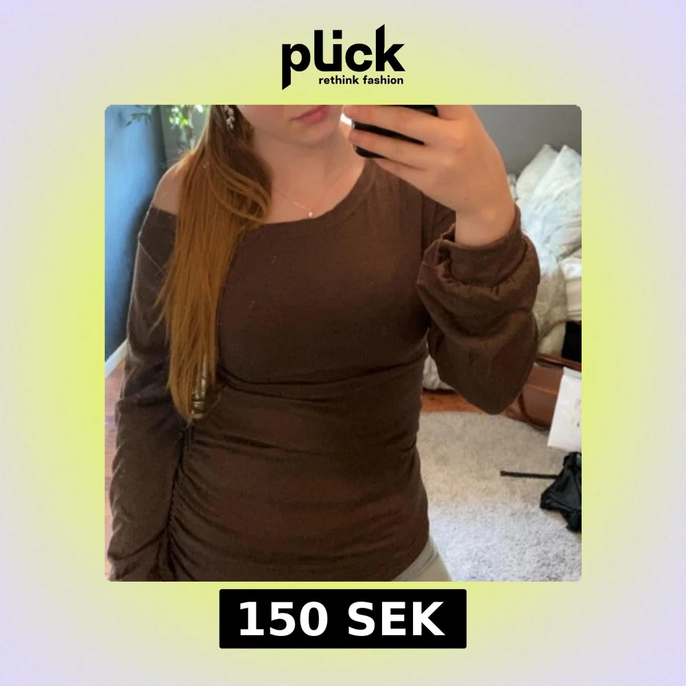 Säljer en brun långärmad topp med oneshoulder-design. Tröjan har en åtsittande passform och är perfekt för dig som vill ha något lite annorlunda men ändå stilrent. Snygg att matcha med både jeans och kjol.