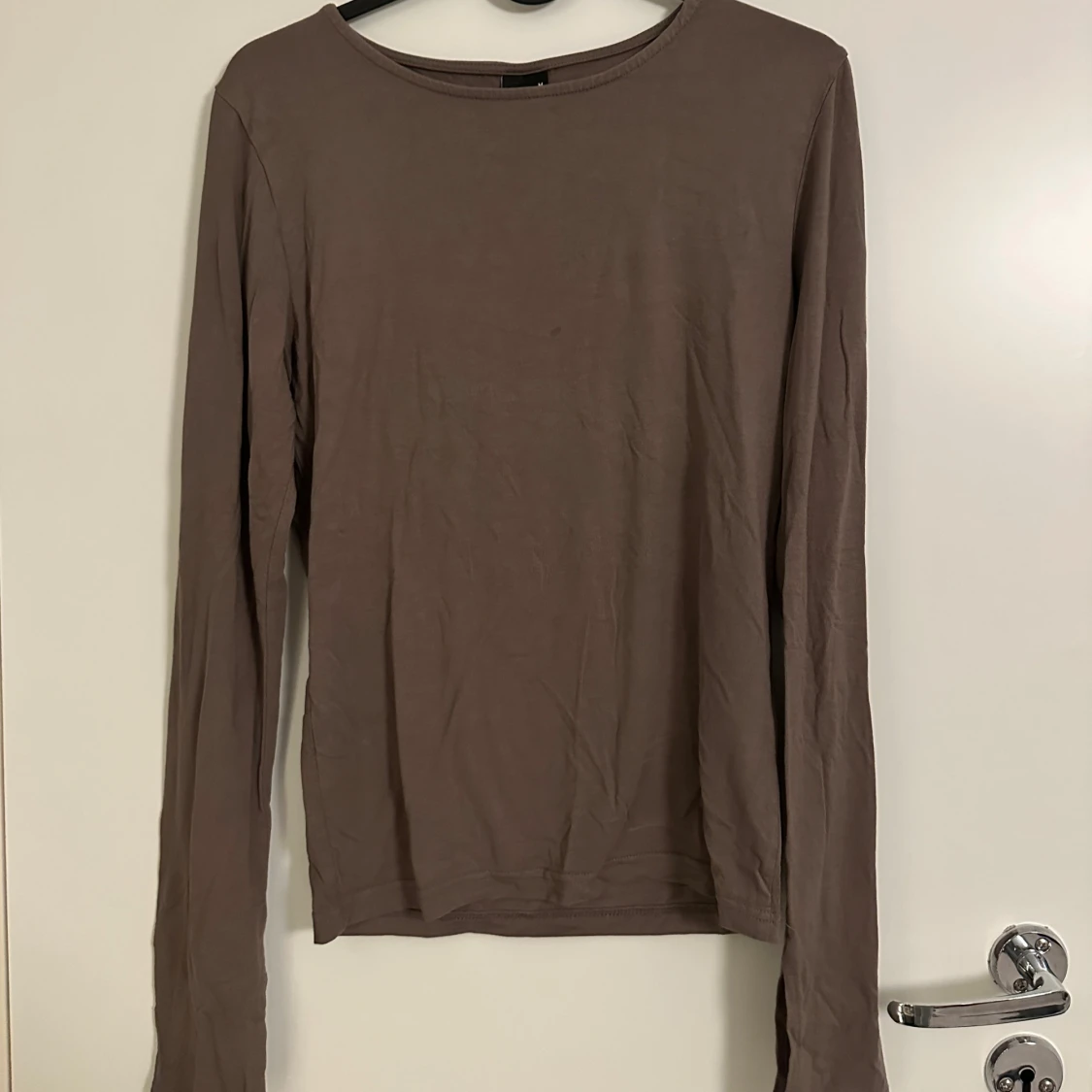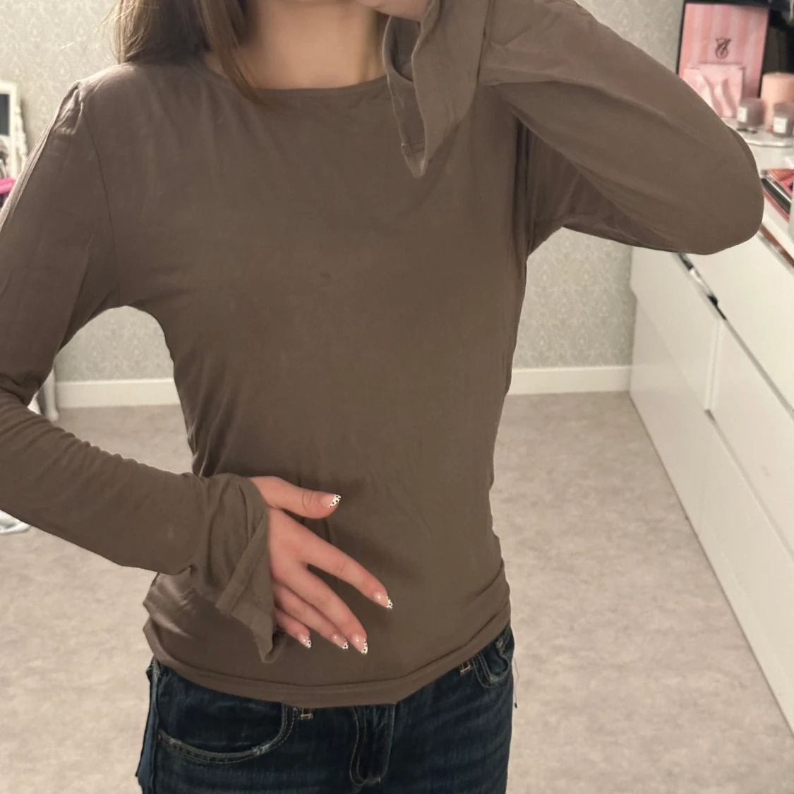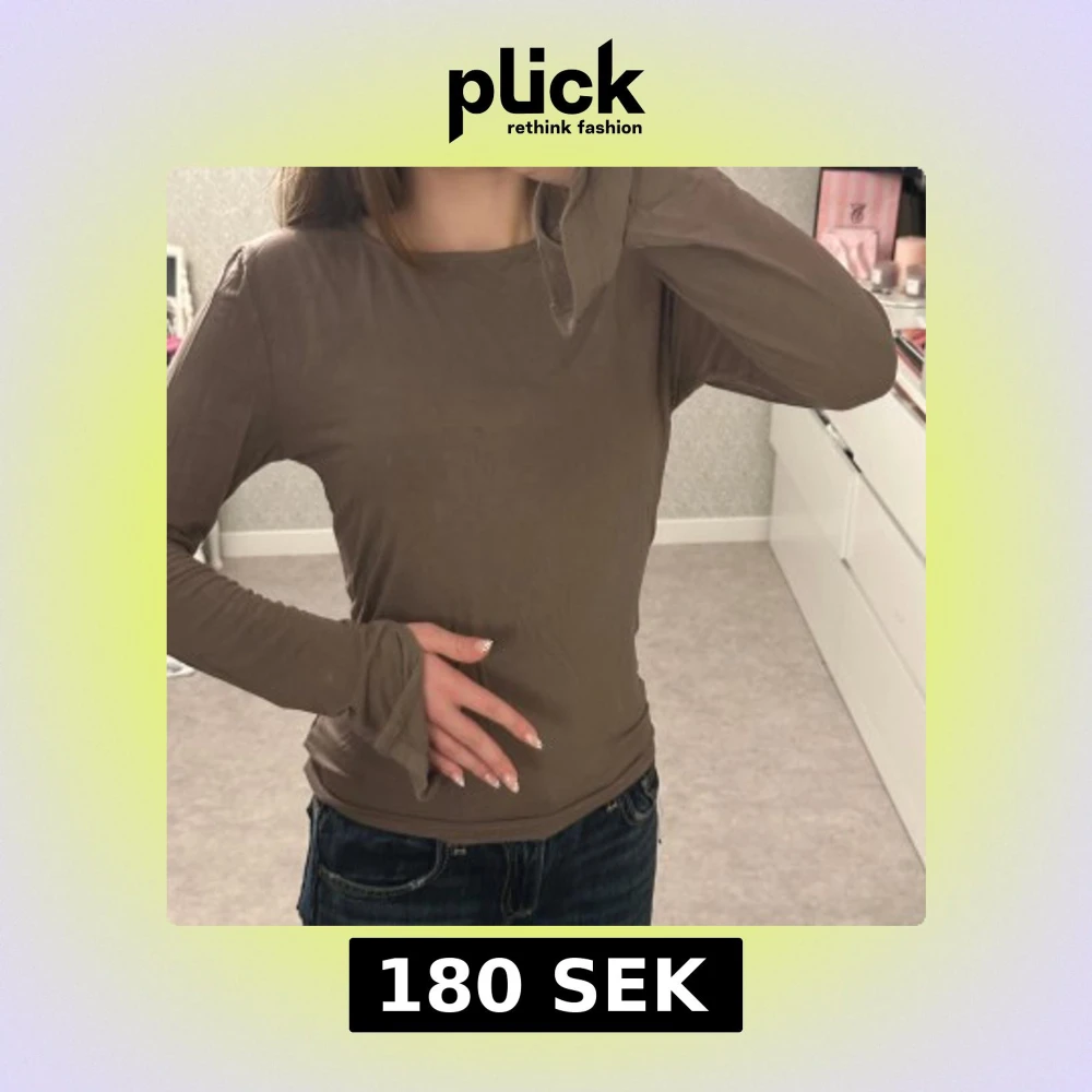 Säljer en brun långärmad topp med slits vid ärmsluten från Gina tricot. Modellen är enkel och har en rund halsringning. Materialet känns mjukt och lätt, perfekt för lager-på-lager eller som den är. Passformen är normal och toppen är stilren utan mönster eller tryck.