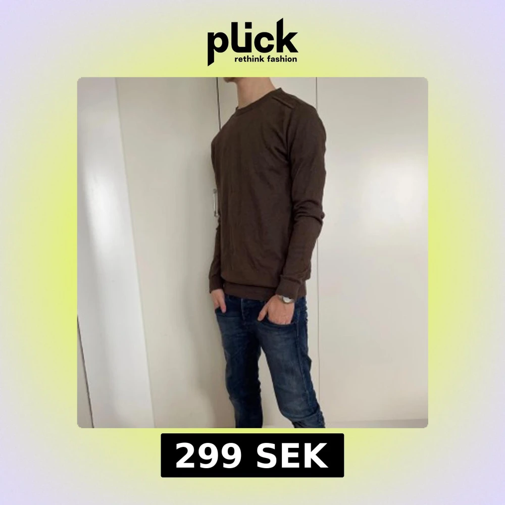 Säljer en stilren brun långärmad tröja. Perfekt för en avslappnad look. Tröjan har en enkel design med rund hals och ribbade muddar vid ärmslut och nederkant. Skick 9/10. Modellen är 173