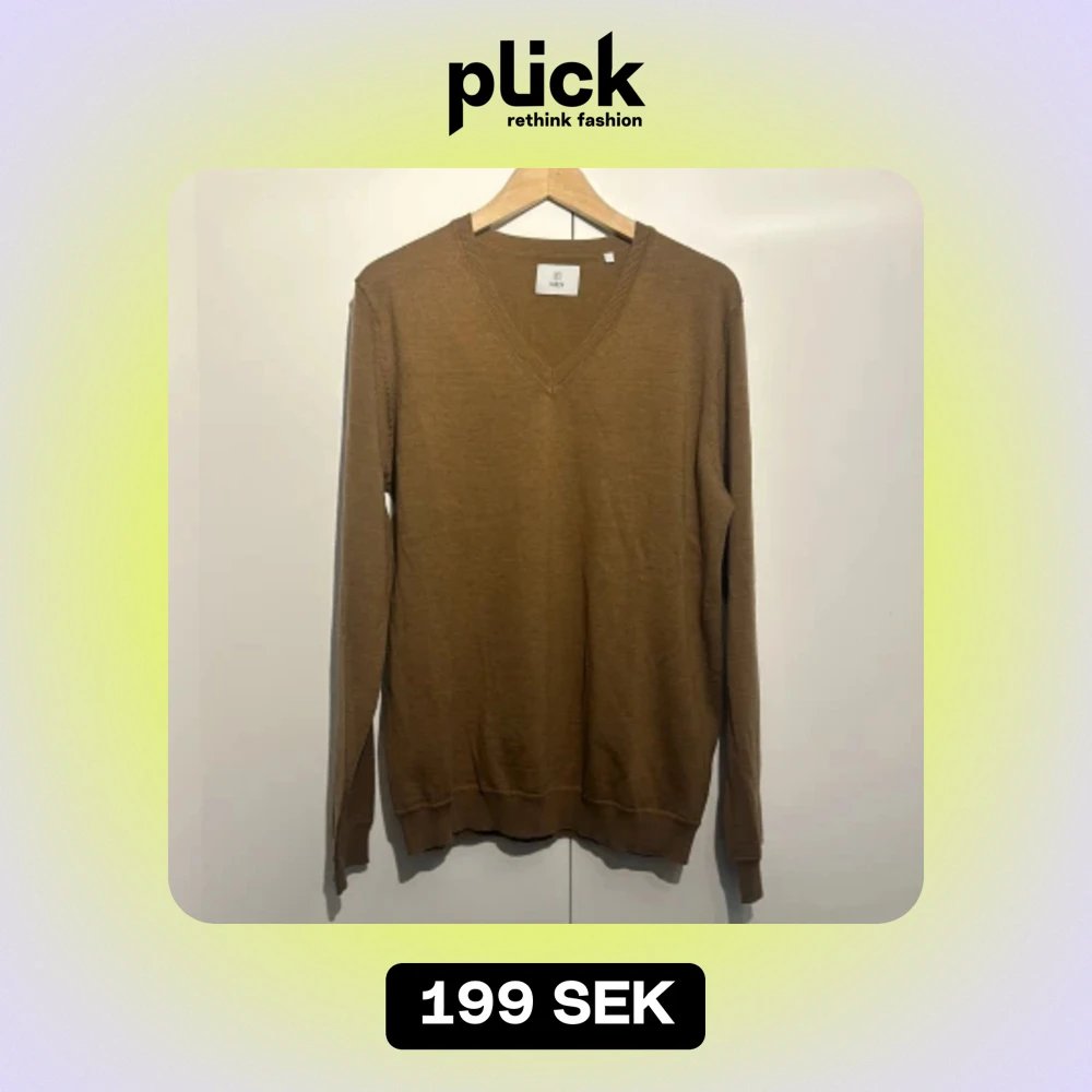 Säljer en snygg brun tröja i merinoull från Bläck. Den har en stilren v-ringning och är perfekt för både höst och vinter. Tröjan är långärmad och i nyskick, vilket gör den till ett måste i garderoben. Supermjuk och bekväm att ha på sig!