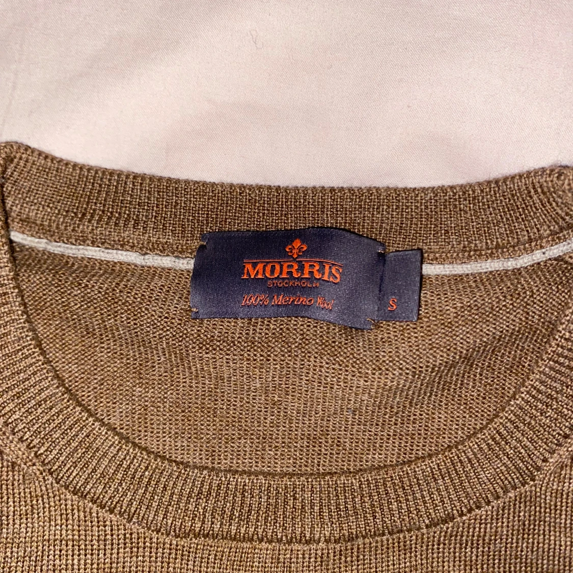 Säljer en stilren brun stickad tröja från Morris i 100% merinoull. Köpte tröjan helt ny i affär för typ ett år sedan. Köptes för 1500 och har använts max 5 gånger. Finns inte en fläck eller skada på tröjan. Hade den bara på under lite finare tillfällen så växte tyvär ur den fasta att den använts så sällan.