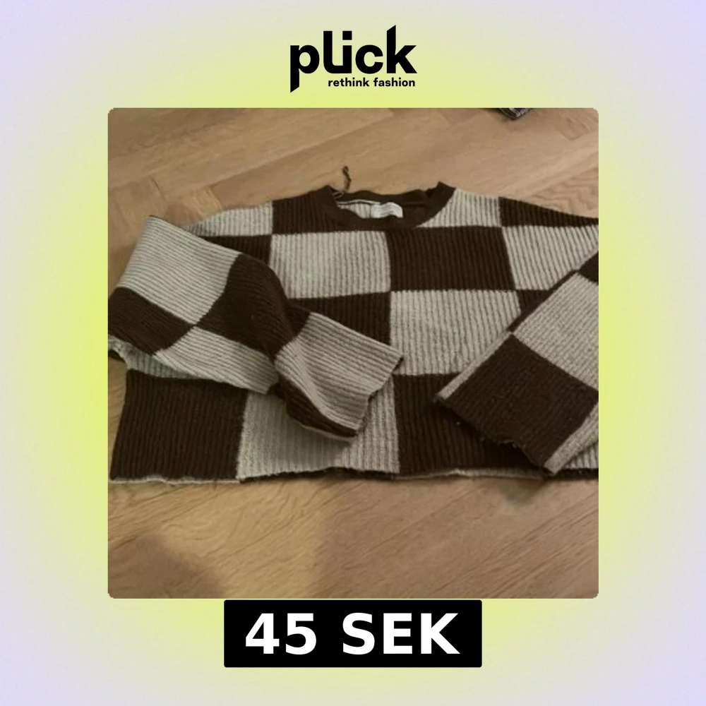 Säljer en cool brun och beige rutig tröja från Pull&Bear. Tröjan har en croppad passform och är ribbad vilket ger den en unik look. Perfekt för att sticka ut i mängden!
