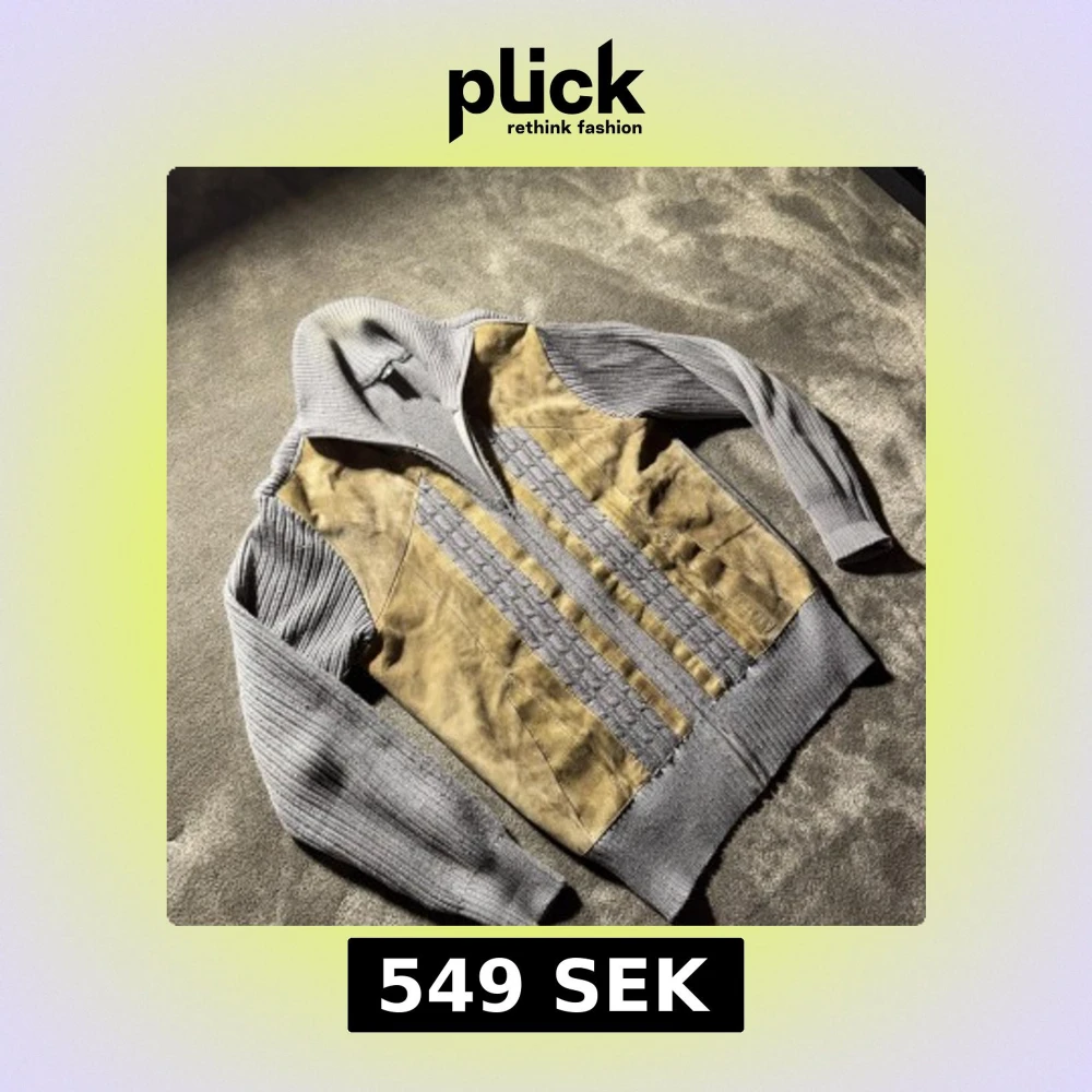 Snygg cardigan med brun mocka framtill och grå stickade partier på ärmar, sidor och krage. Jackan har dragkedja, ribbade muddar och kabelstickade detaljer längs framsidan. Perfekt för dig som gillar en unik och chill stil.