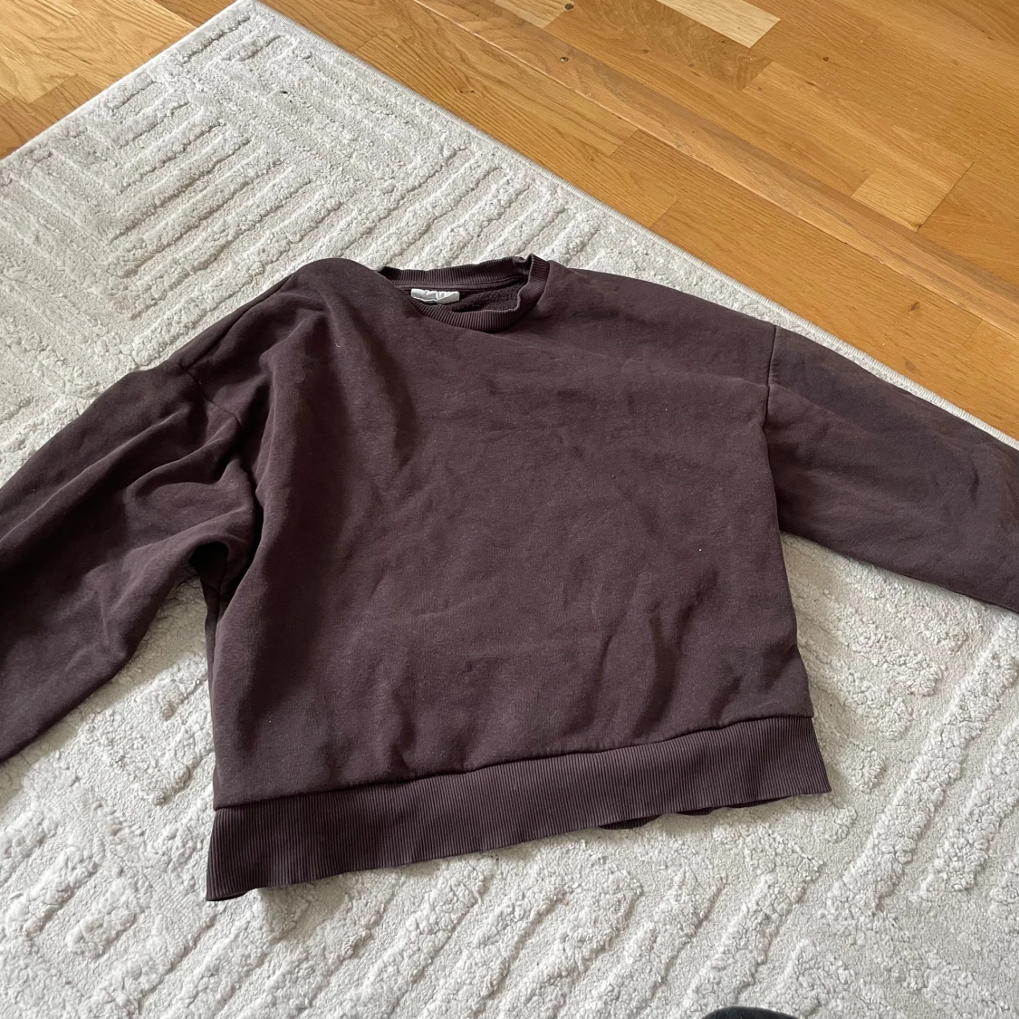 Mysig brun sweatshirt med oversized passform och rund hals.
