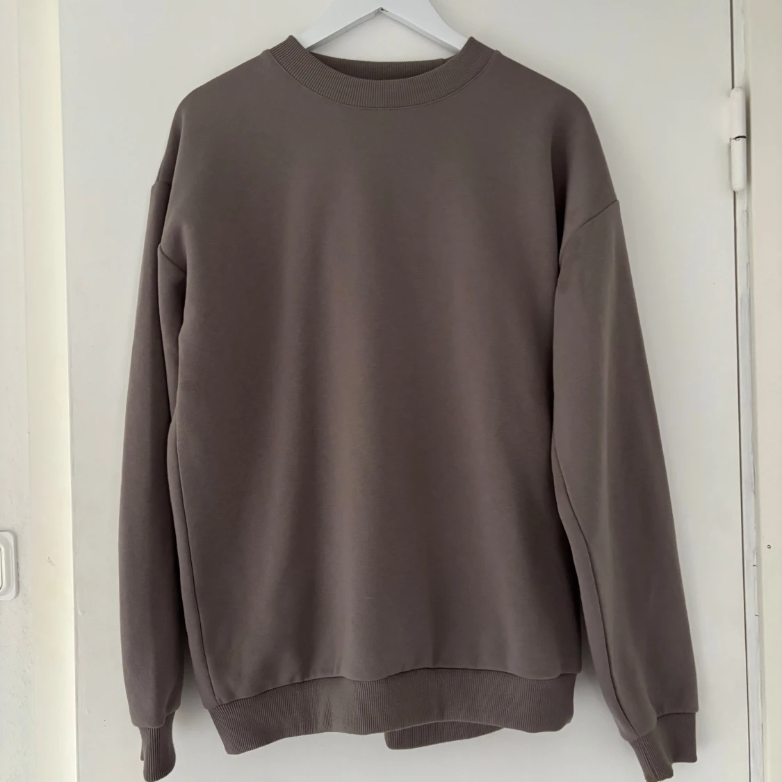 Enkel och stilren brun sweatshirt med rund hals och långa ärmar. Oversized passform med ribbade muddar vid ärmslut och nederkant. Perfekt för en avslappnad look.