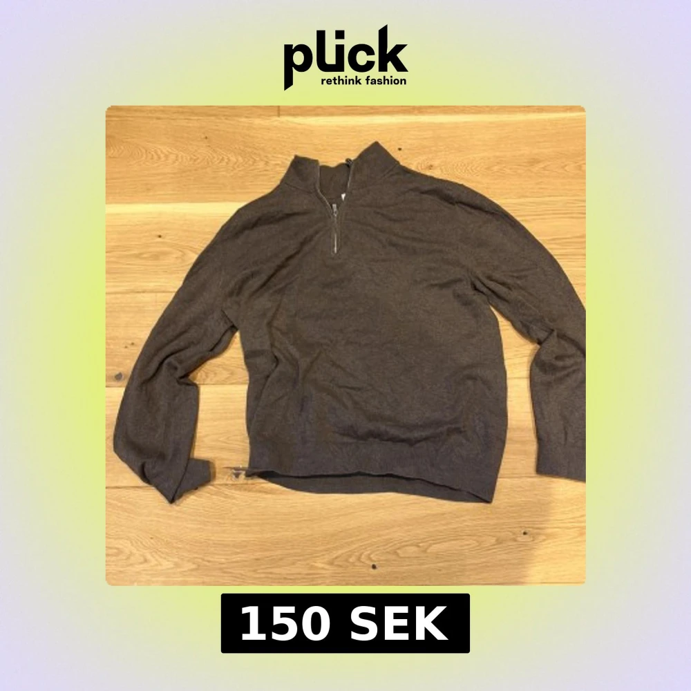 Säljer en stilren brun tröja med dragkedja vid halsen. Perfekt för kyligare dagar med sin långa ärmar och mjuka material. Passar bra till både jeans och chinos.