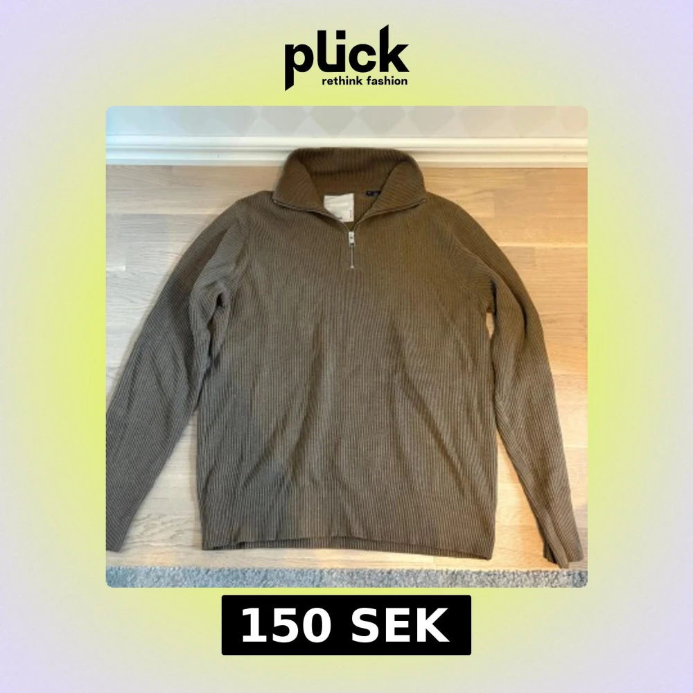 Säljer en brun ribbstickad tröja från Jack & Jones med half zip och hög krage. Tröjan är långärmad och har en relaxed vibe, perfekt för lager-på-lager. Materialet är stickat och känns mjukt mot huden. Enkel att matcha med jeans eller vad som helst! Den ser riktigt bra ut på!