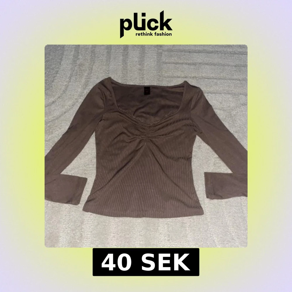 Säljer en brun långärmad topp med ribbad struktur och snygg v-ringning med rynkdetalj framtill. Perfekt för dig som gillar en enkel men trendig stil. Passar till både jeans och kjol för en chill look.