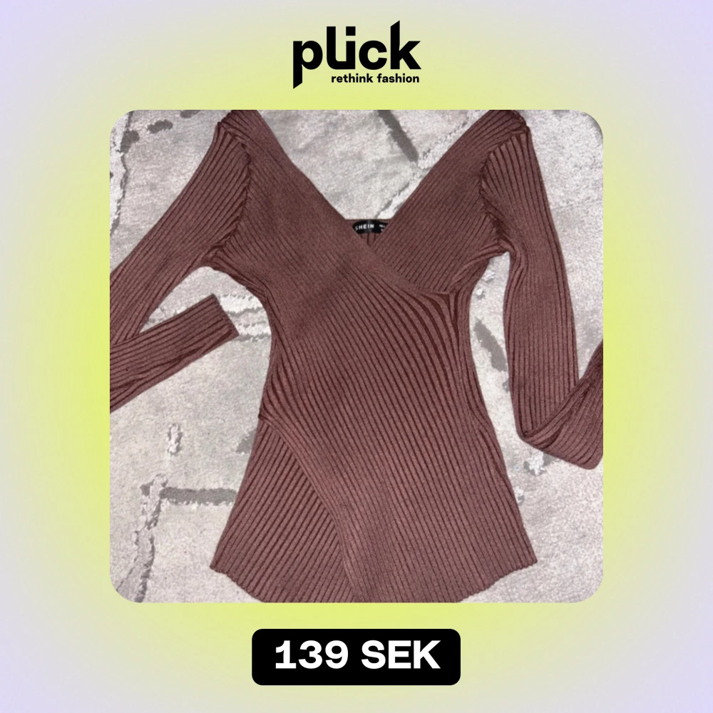 Säljer en snygg brun ribbad topp med v-ringad design. Skönt material på den.
