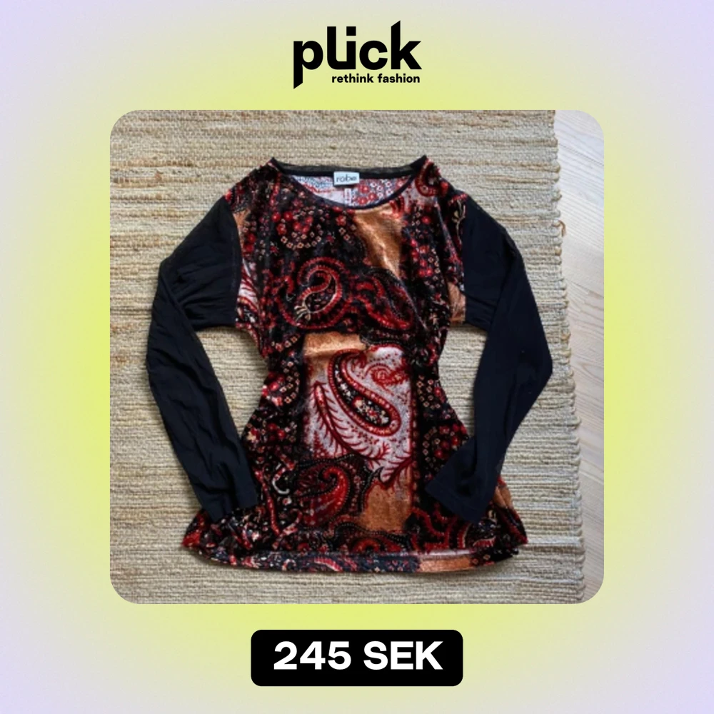 Säljer en unik och färgglad tröja från Rabe. Den har ett coolt paisleymönster i rött, svart och brunt med inslag av blommor. Tröjan är långärmad med svarta ärmar och har en normal passform. Perfekt för höst och vinter!