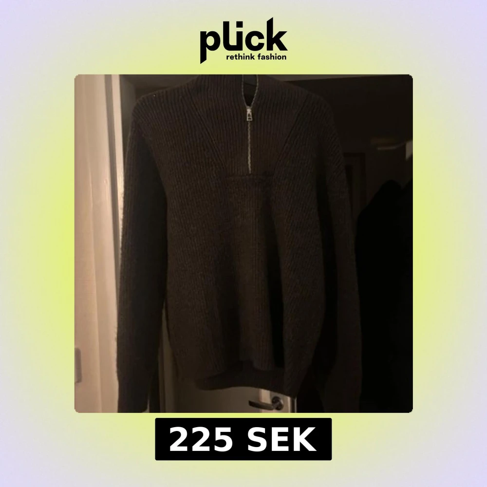Mysig brun stickad tröja från H&M med half zip-dragkedja framtill och ribbad struktur. Tröjan har lång ärm och en hög krage som ger extra värme. Regular fit och perfekt för kyliga dagar. Enkel att matcha med jeans eller cargo. Använd 1 gång!