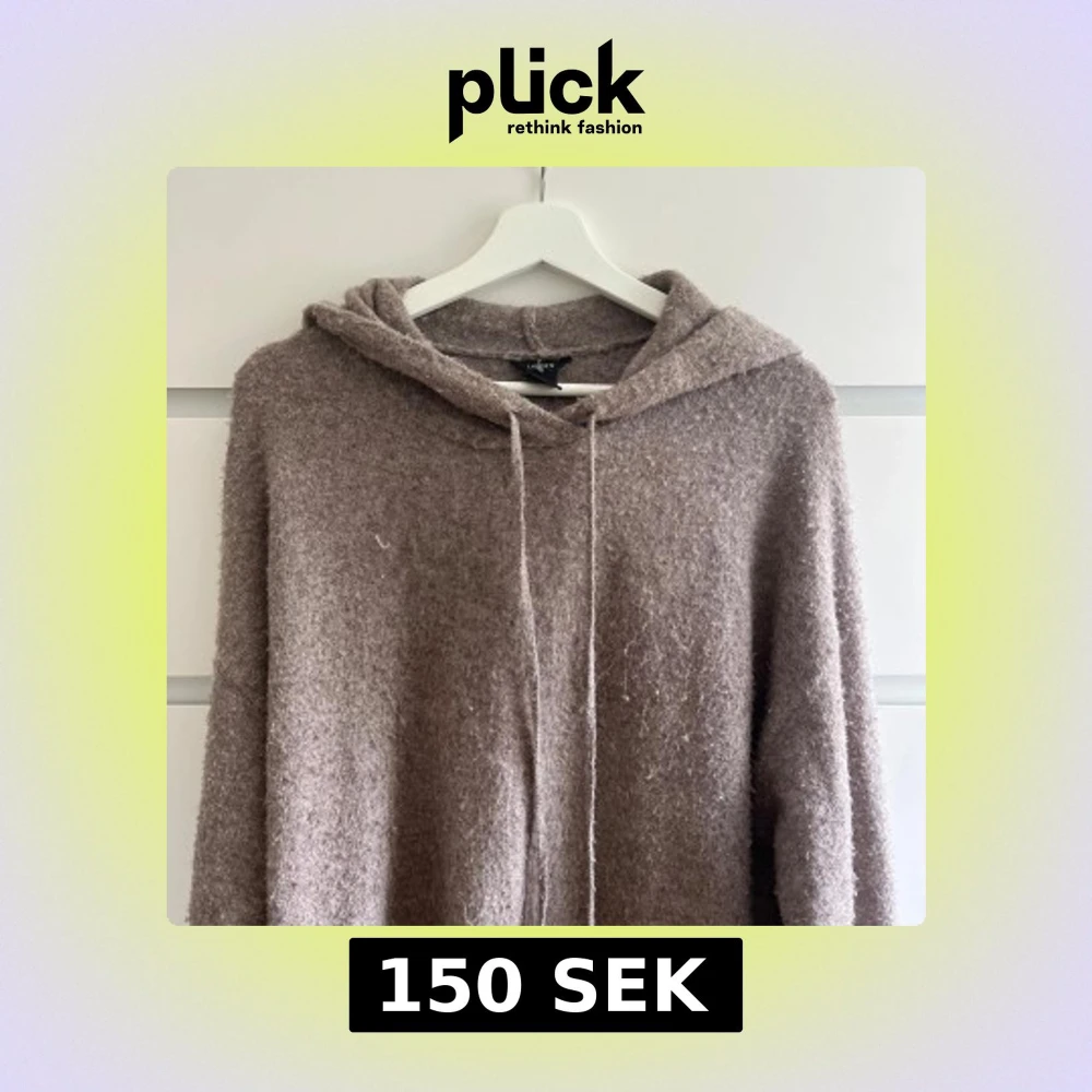 Mysig brun stickad hoodie från Lindex med luva och snörning. Tröjan har lång ärm och är tillverkad i ett fluffigt, mjukt material som känns extra skönt under kyliga dagar.