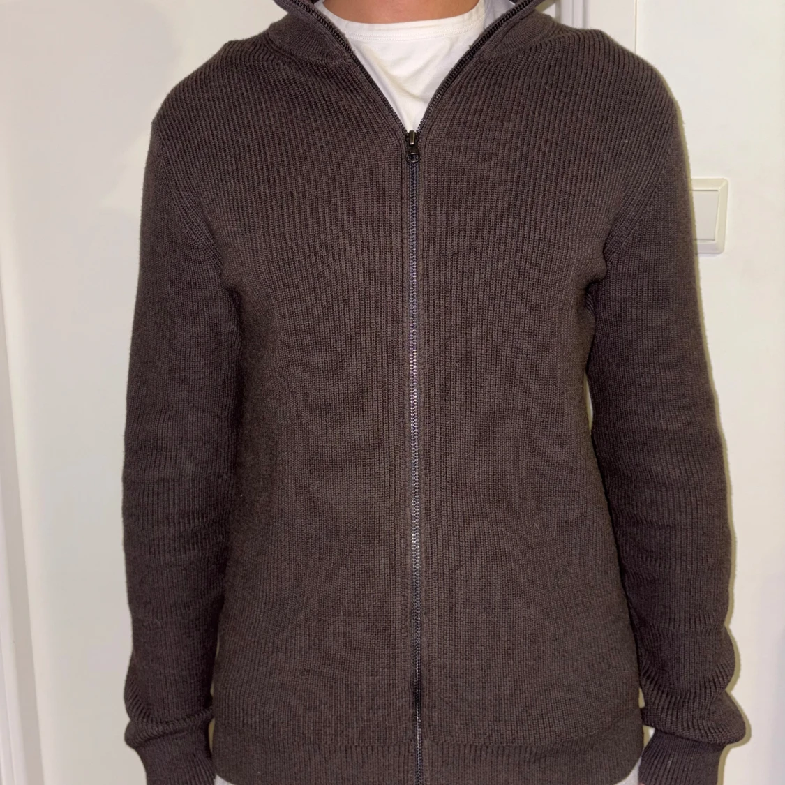 Säljer en stilren brun stickad kofta från John Henric. Koftan har en dragkedja framtill och långa ärmar, perfekt för kyligare dagar. Den är i storlek M. Är knappt använd med inga defekter, är helt som ny. Köpt för 1299 på John Henric och säljer för 699kr