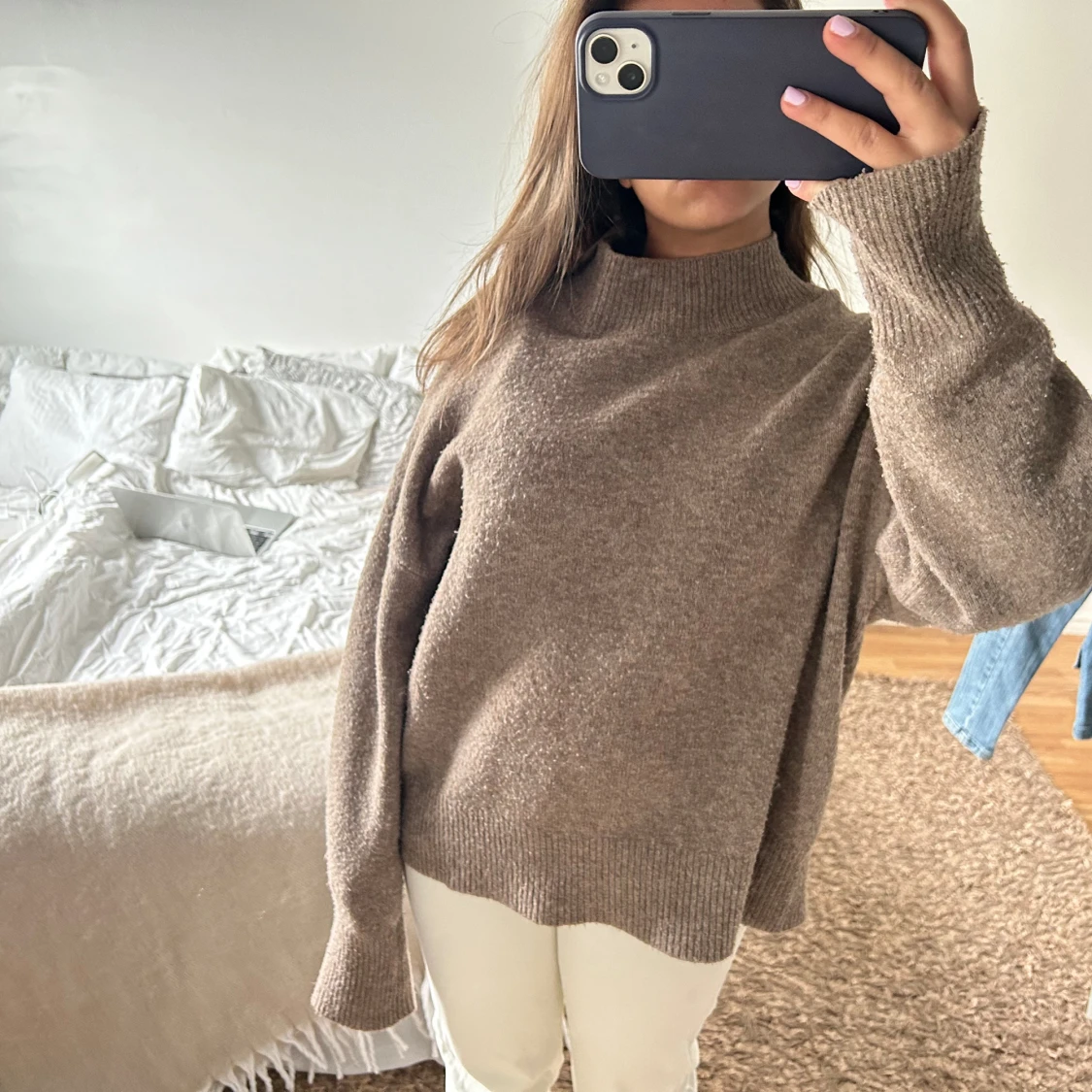 Brun stickad tröja med polo👍🏼🤎