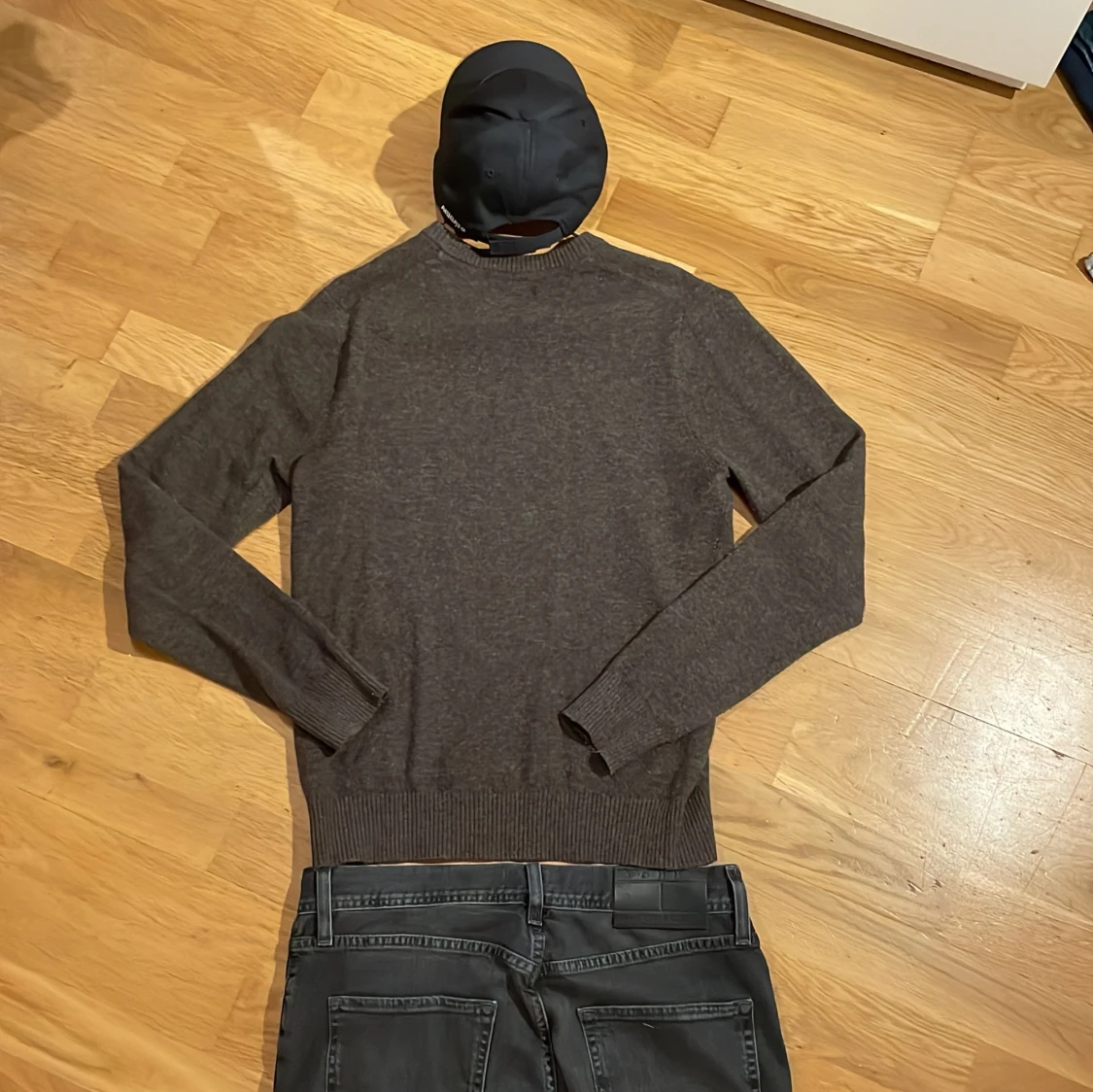 Använt skick, inga defekter. Stickad tröja i brun färg.