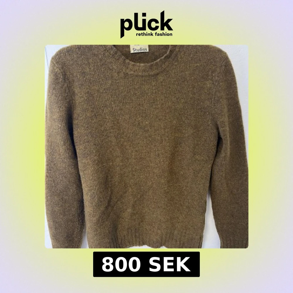Säljer en brun stickad tröja från Acne Studios i 100% lammull. Tröjan har rund halsringning, ribbade muddar och lång ärm. Endast använd fåtal gånger, i princip nyskick.