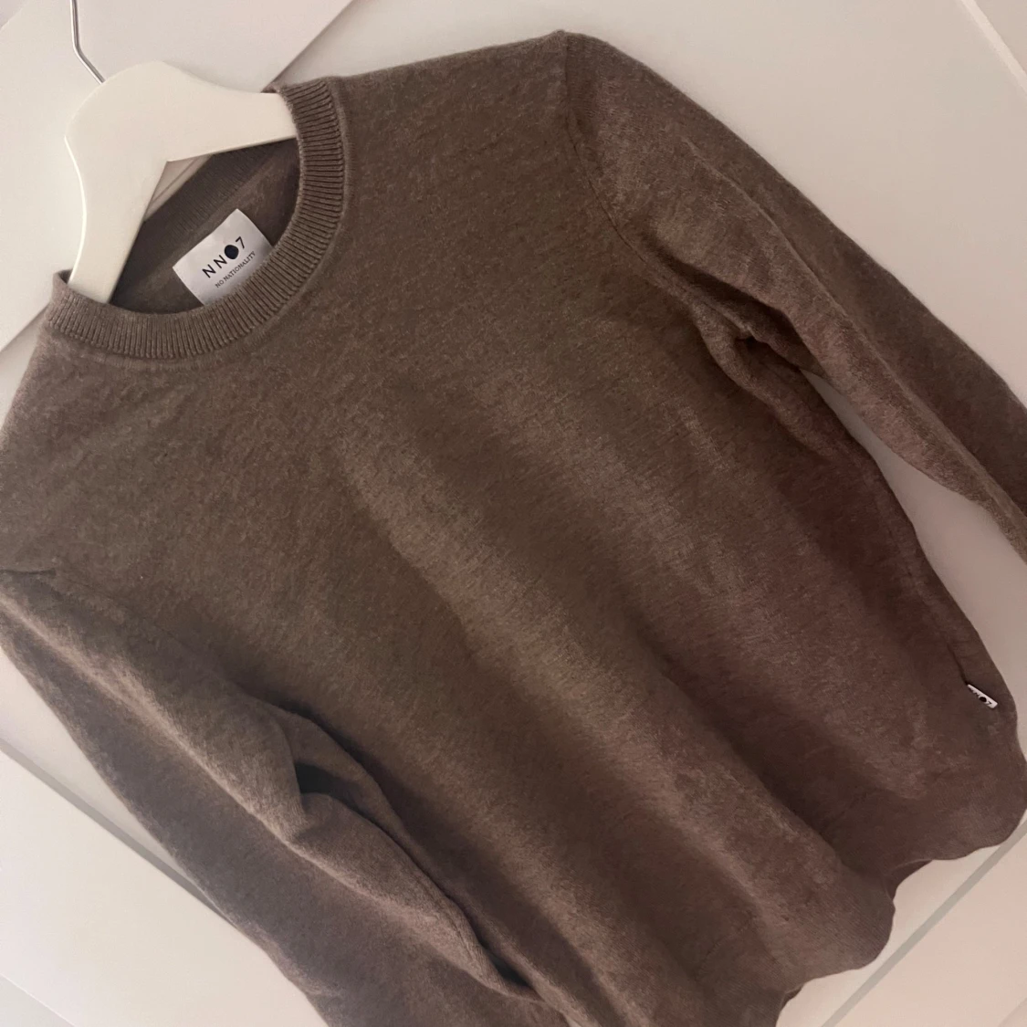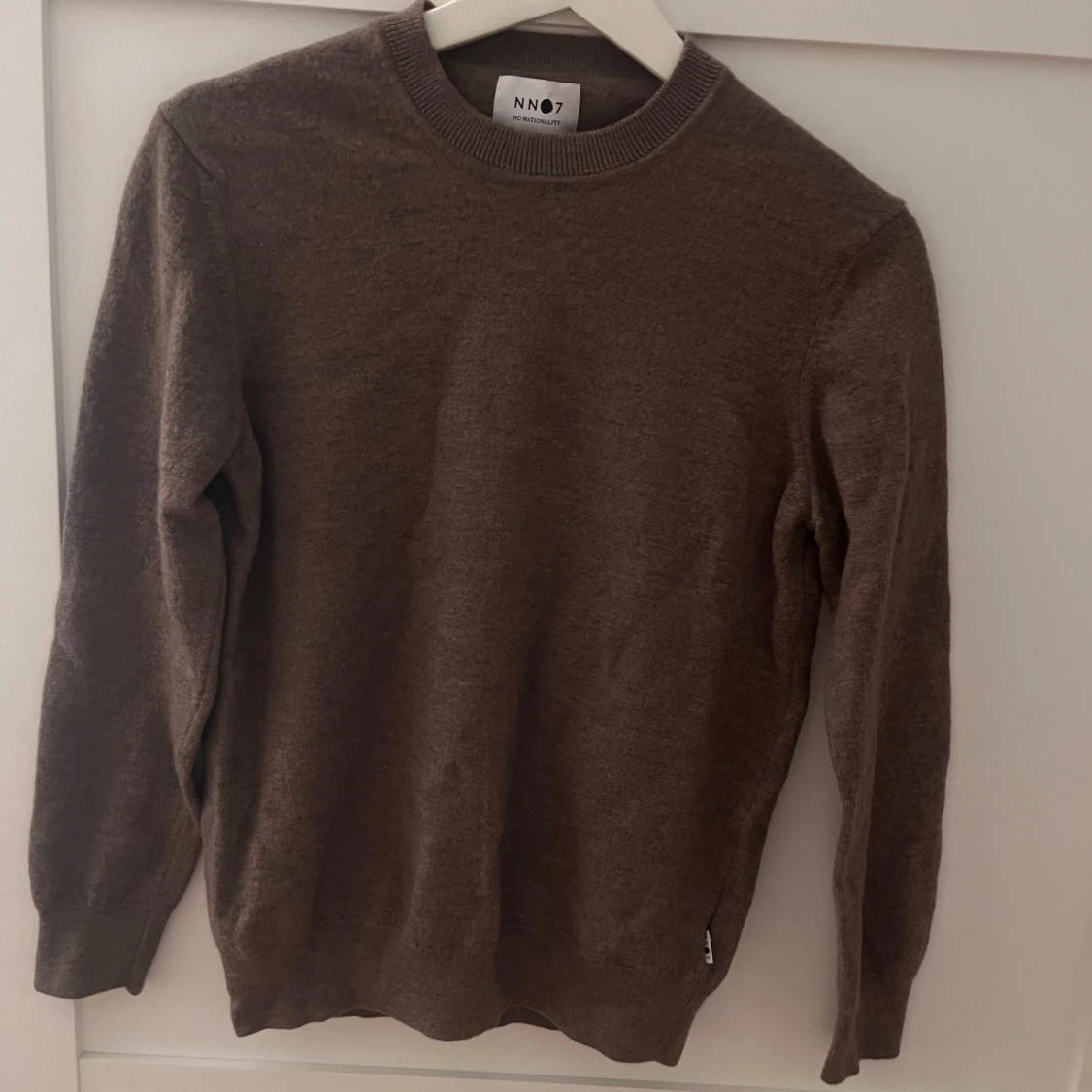 Brun stickad tröja från NN07 med rund hals och långa ärmar. 100% ull. Nypris runt 2000. Knappt använd.
