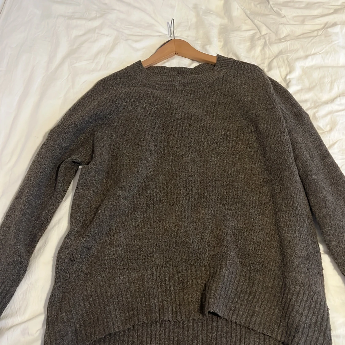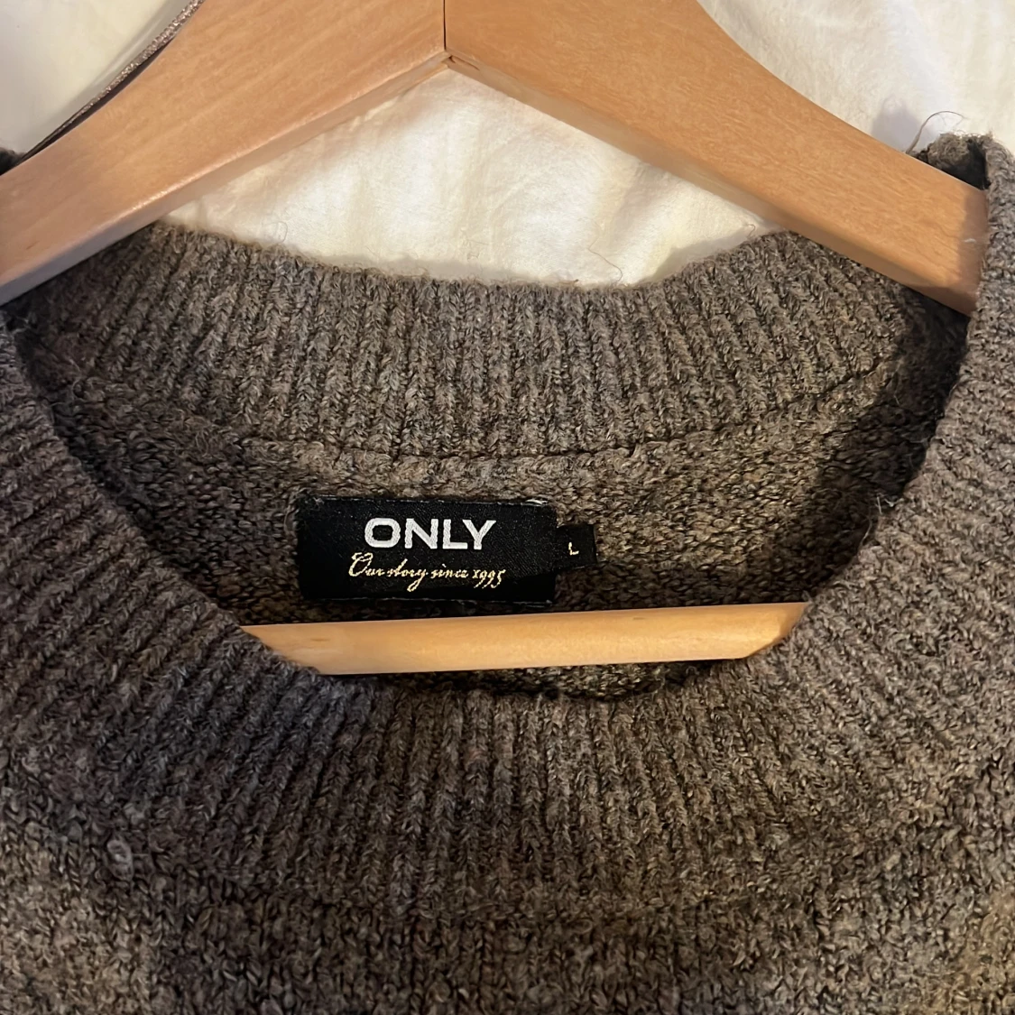 Mysig brun stickad tröja från ONLY med rund hals och ribbade detaljer vid ärmslut och nederkant. Perfekt för kyliga dagar och ger en avslappnad look.