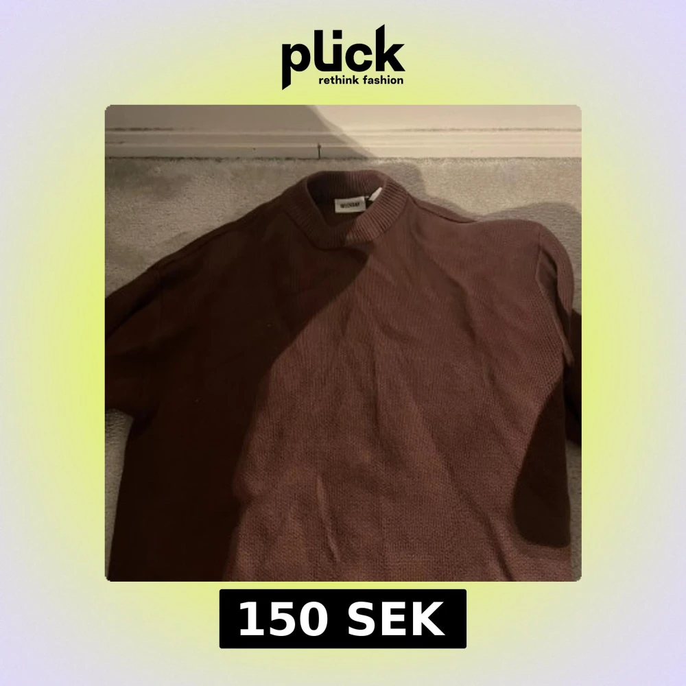 Säljer en brun stickad tröja från Weekday. Tröjan har en ribbad krage och är perfekt för kyligare dagar. Enkel och stilren design som passar till det mesta.