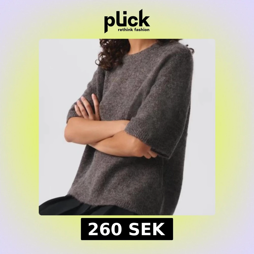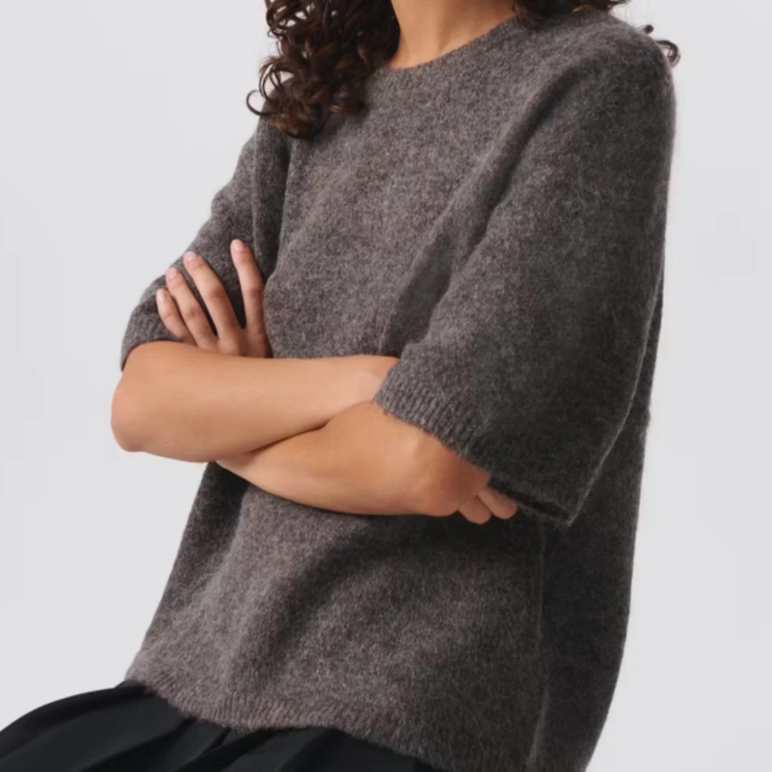 Brun stickad tröja med kort arm från Gina. SLUTSÅLD❗️