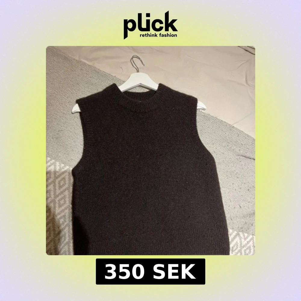 Säljer en stilren brun stickad väst med rund halsringning. Perfekt för lager-på-lager under kyligare dagar. Enkel och tidlös design som passar till det mesta! Från arket, använd fåtal gånger. Nypris 700 kr