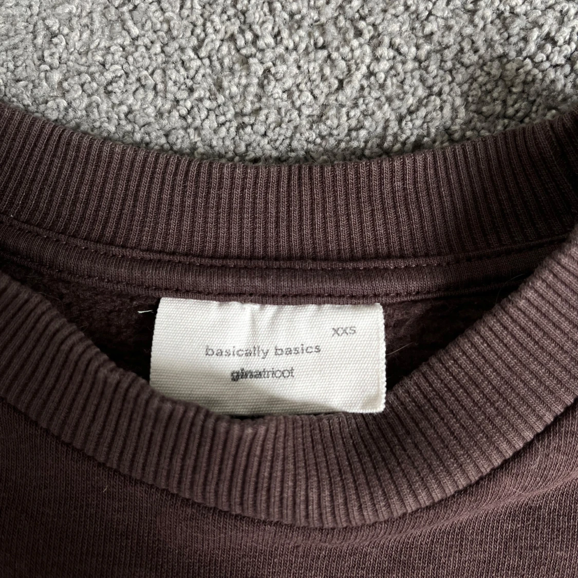 Mysig brun sweatshirt från Gina Tricot, basically basics-kollektionen. Tröjan har rund halsringning, långa ärmar och breda muddar vid ärmslut och nederkant. Perfekt för en avslappnad stil.