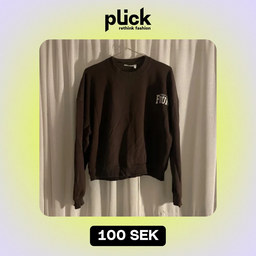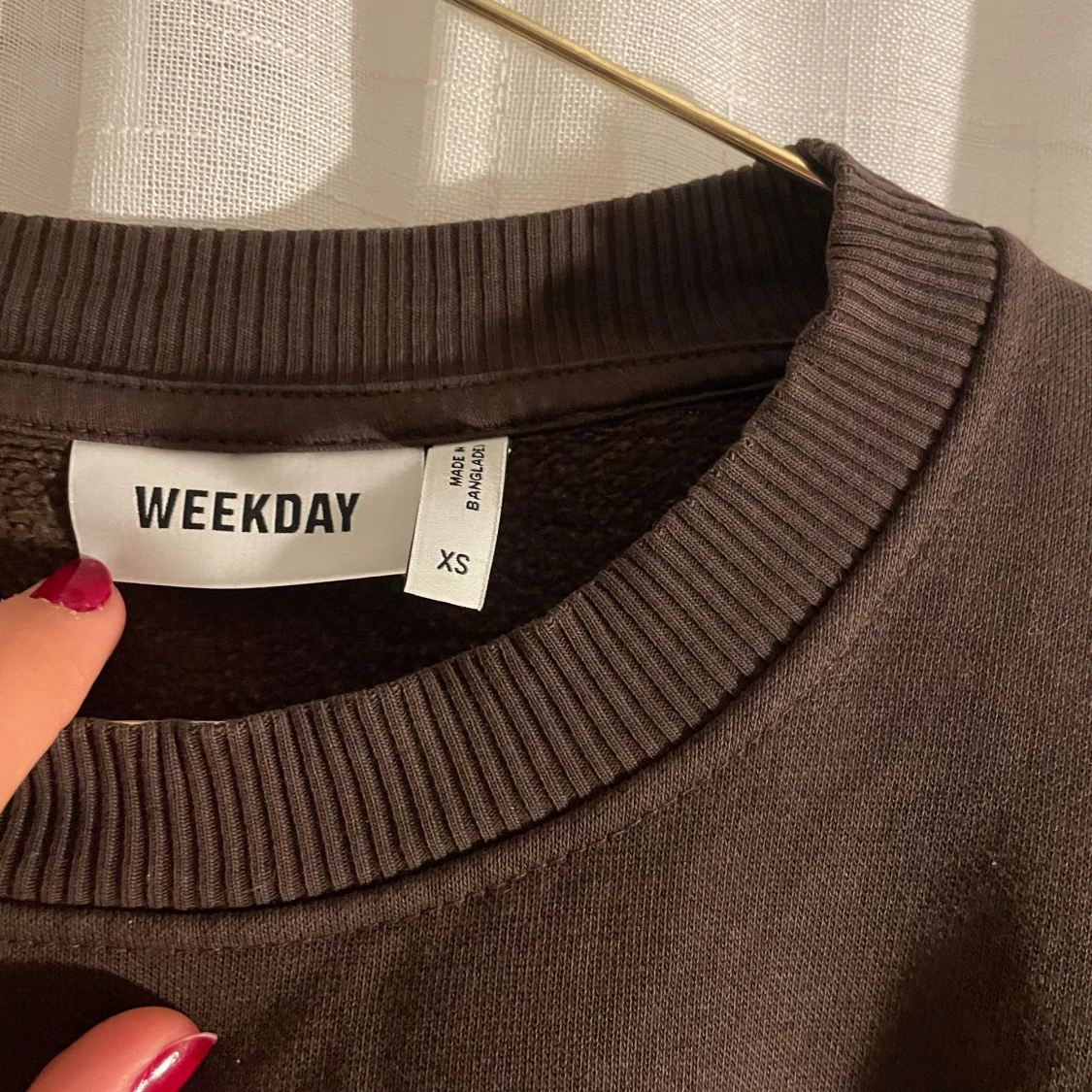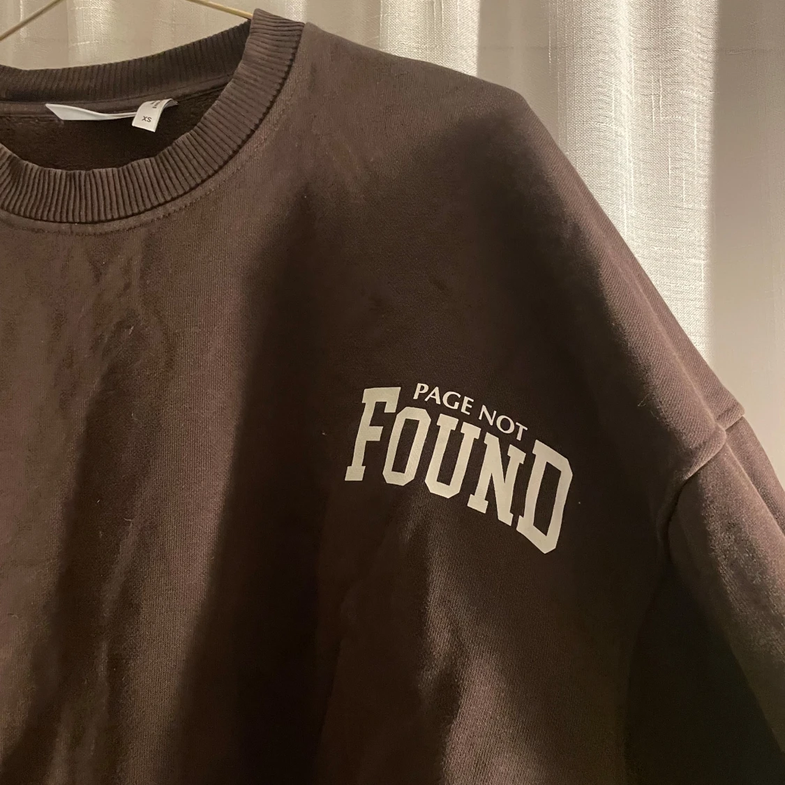 Säljer en brun sweatshirt från Weekday i storlek XS. Den har en cool text 'Page Not Found' tryckt på bröstet. Tröjan är har långa ärmar med ribbade muddar. Är oversize.