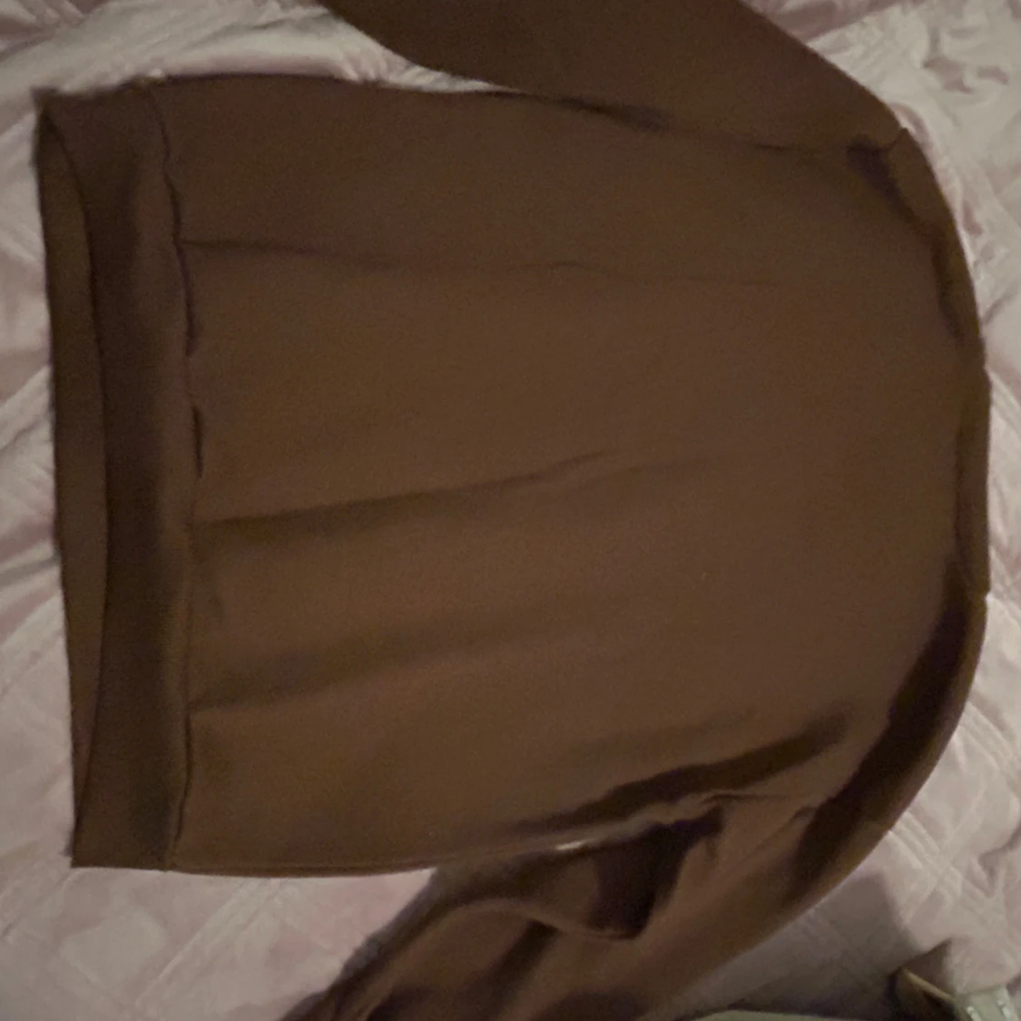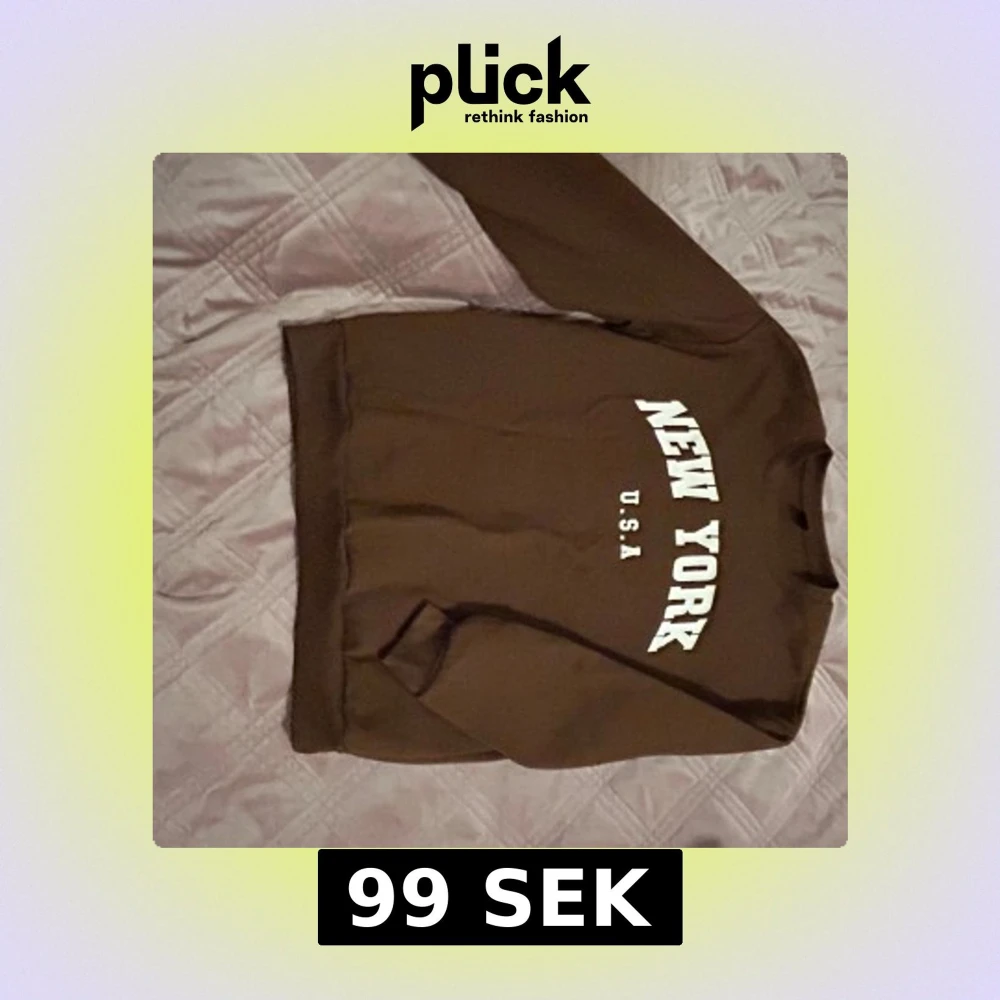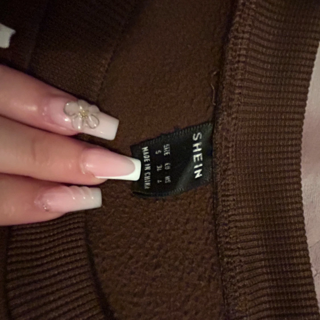 Brun sweatshirt från SHEIN med vit text 'NEW YORK U.S.A' på bröstet. Klassisk rund halsringning och långa ärmar. Mjuk insida och relaxed fit, perfekt för chill dagar. Tillverkad i polyesterblandning.