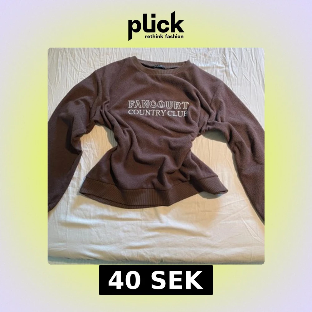 Mysig brun sweatshirt från SHEIN med texten 'Fancourt Country Club' broderad på bröstet. Tröjan har långa ärmar, ribbade muddar och är tillverkad i ett mjukt syntetmaterial. Perfekt för en avslappnad stil.