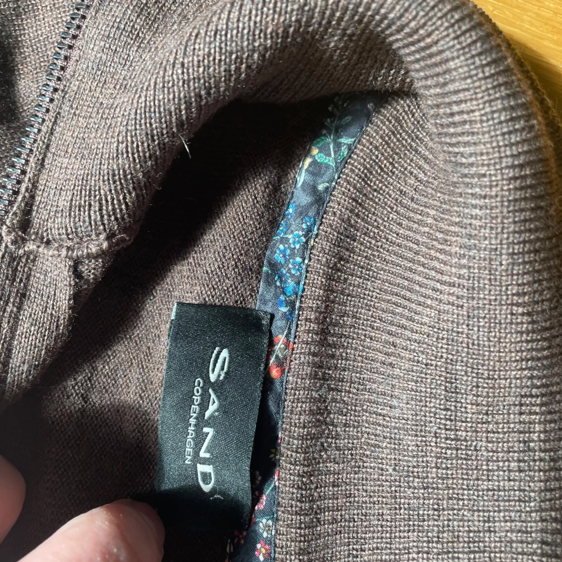 Säljer en brun tröja från Sand Copenhagen med halv dragkedja och ståkrage. Tröjan har långa ärmar och ribbade muddar vid ärmslut och nederkant. Perfekt för lager-på-lager och snygg detalj med mönstrat tyg på insidan av kragen. Hör av dig vid åtankar!