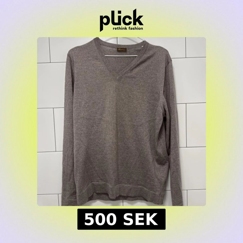 En stilren brun långärmad tröja från Stenströms med v-ringning. Tröjan är i mjukt bomullsmaterial och har en klassisk, normal passform. Perfekt för lager-på-lager. Lite nopprig på vissa ställen samt en liten fläck nere på framsidan se bild 3. Hör av dig vid minsta fråga. Mvh