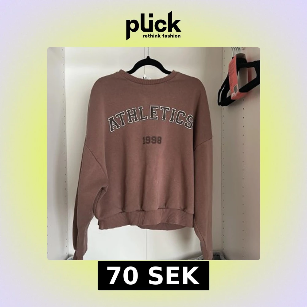 Säljer en brun oversized sweatshirt med trycket 'ATHLETICS 1998' på framsidan . Materialet känns som mjuk bomullsmix.