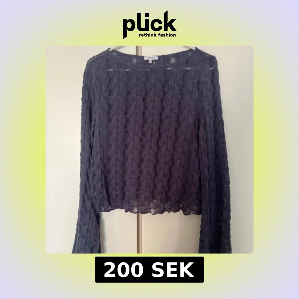Säljer en blå långärmad tröja från Bubbleroom med vågigt strukturmönster. Toppen har långa, vida ärmar och är tillverkad i tunn. Perfekt för lager-på-lager och en cool, edgy look.