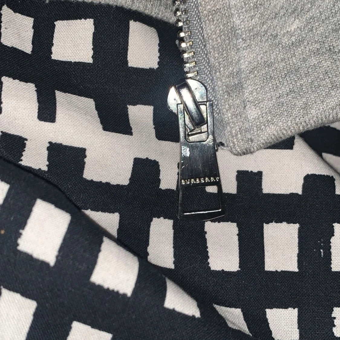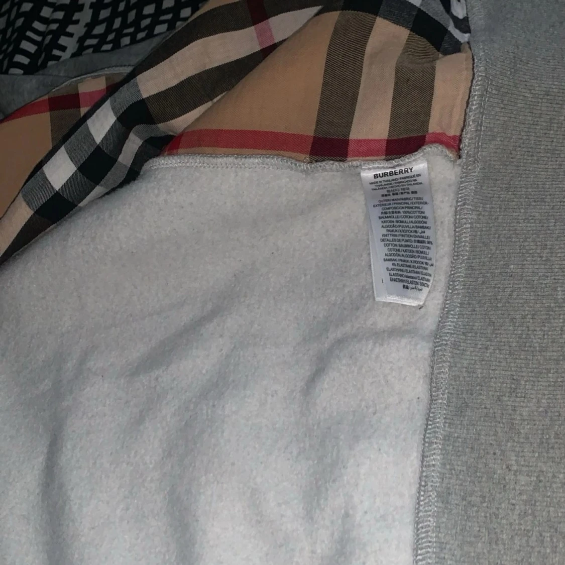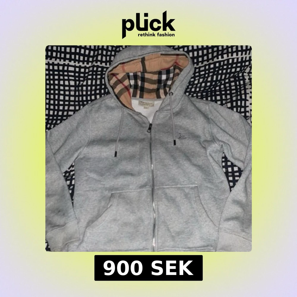Säljer en stilren grå huvtröja från Burberry med dragkedja och klassiskt rutigt mönster i huvan. Tröjan har långa ärmar och en bekväm passform. Perfekt för en avslappnad look. Storlek M passar S