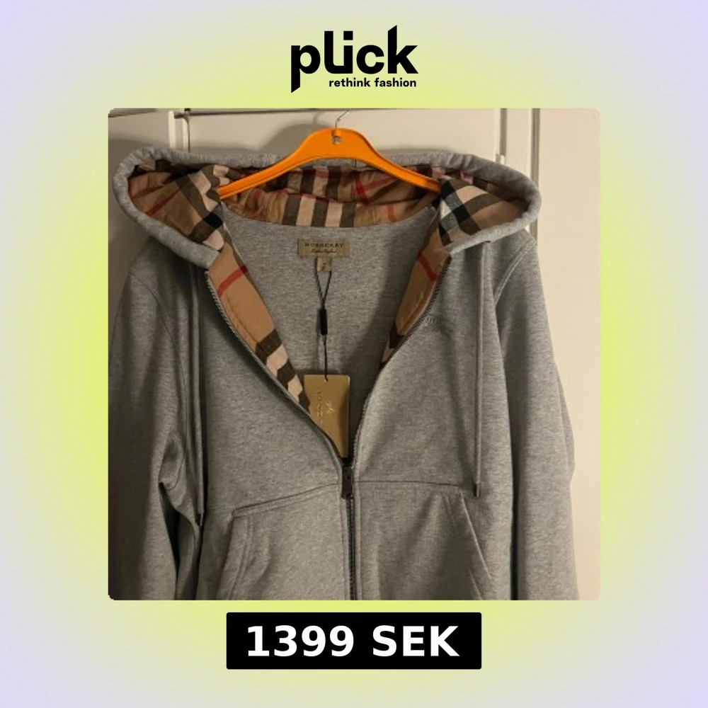 Säljer en grå hoodie från Burberry i storlek M. Tröjan har dragkedja, klassisk rutig huva i beige, svart och röd, samt broderad Burberry-logga på bröstet. Mjuk bomullskvalitet och praktiska fickor framtill. Perfekt för dig som gillar stilrena och lyxiga detaljer.