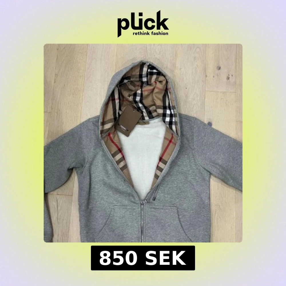Grå Burberry hoodie med rutig huva