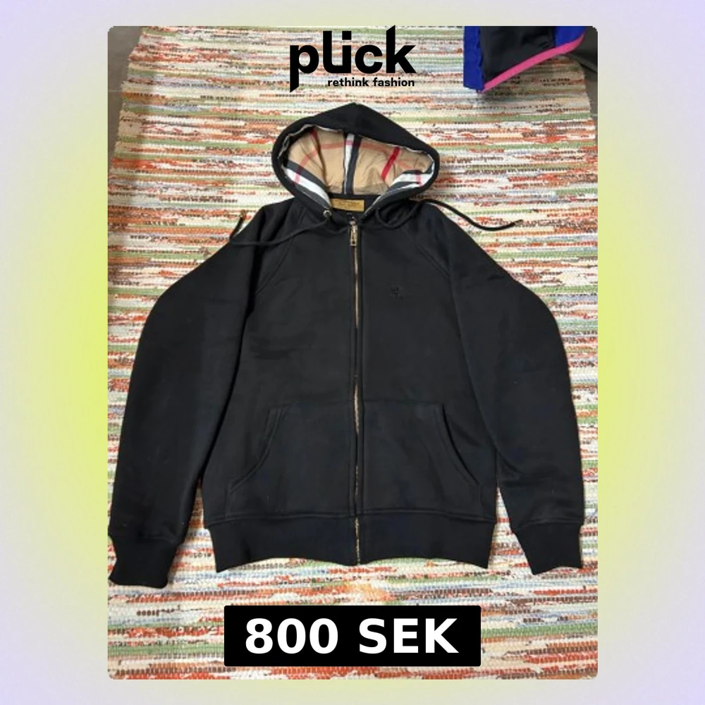 Svart hoodie från Burberry med klassiskt rutigt foder i huvan och guldfärgad dragkedja. Tröjan har broderad Burberry-logga på bröstet, känguruficka och justerbar huva. Tillverkad i mjuk bomull, perfekt för en chill och stilren look. Sitter VÄLDIGT cropped och tight.