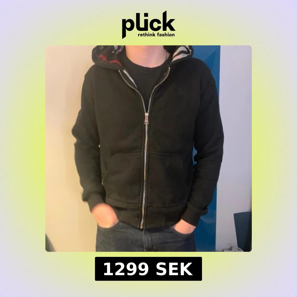 Svart hoodie från Burberry med hel dragkedja och klassisk rutig insida i huvan med röda, vita och grå detaljer. Tröjan har huva, två fickor fram och ribbade muddar. Perfekt för dig som gillar stilrena streetwear-plagg med lyxig touch.