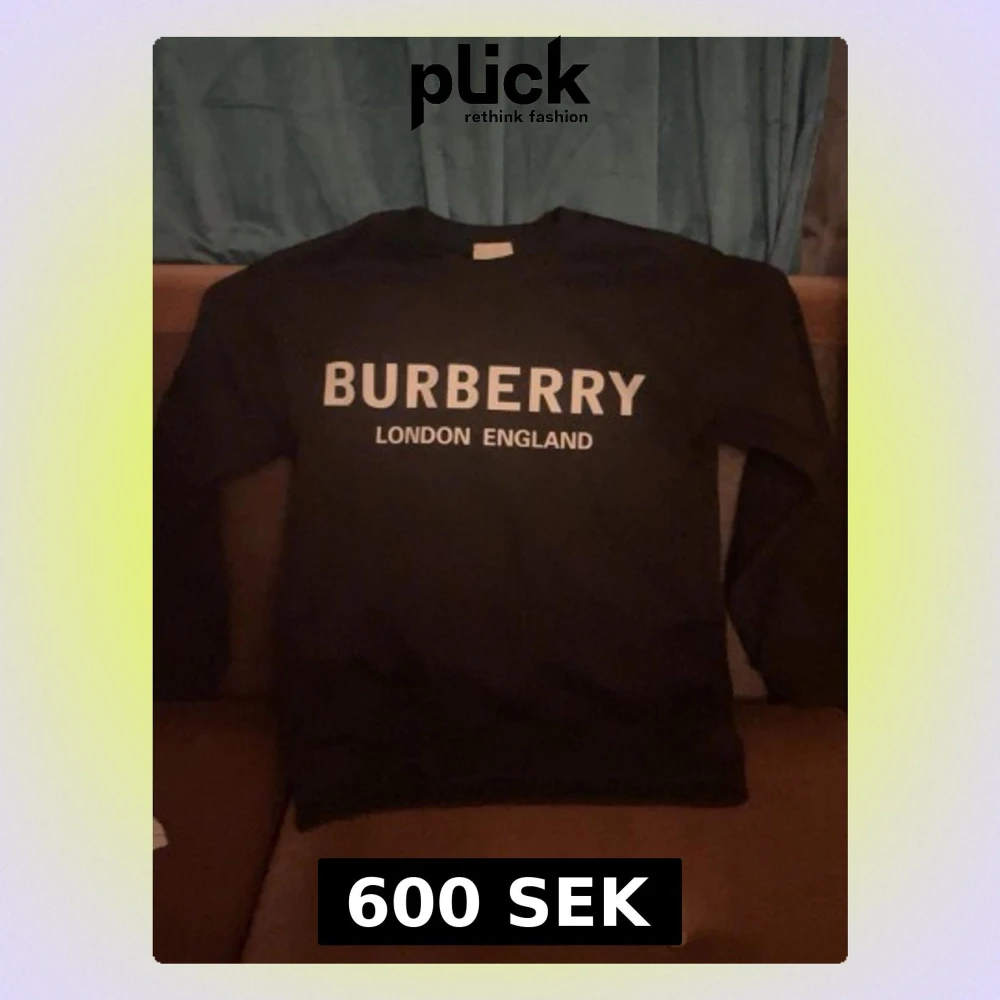 Säljer en svart sweatshirt från Burberry med stor vit logga och texten 'London England' på bröstet. Tröjan har rund hals och långa ärmar, perfekt för dig som vill ha en clean och stilren look. Materialet känns mjukt och skönt mot huden, säljer den då den inte passar mig. PRISET ÄR INTE HUGGET I STEN