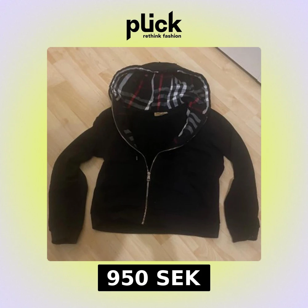Säljer en snygg svart hoodie från Burberry med klassiskt rutigt mönster i huvan. Jackan har dragkedja framtill och är tillverkad i bomull. Perfekt för en stilren look. Koftan är använd fåtal gånger.