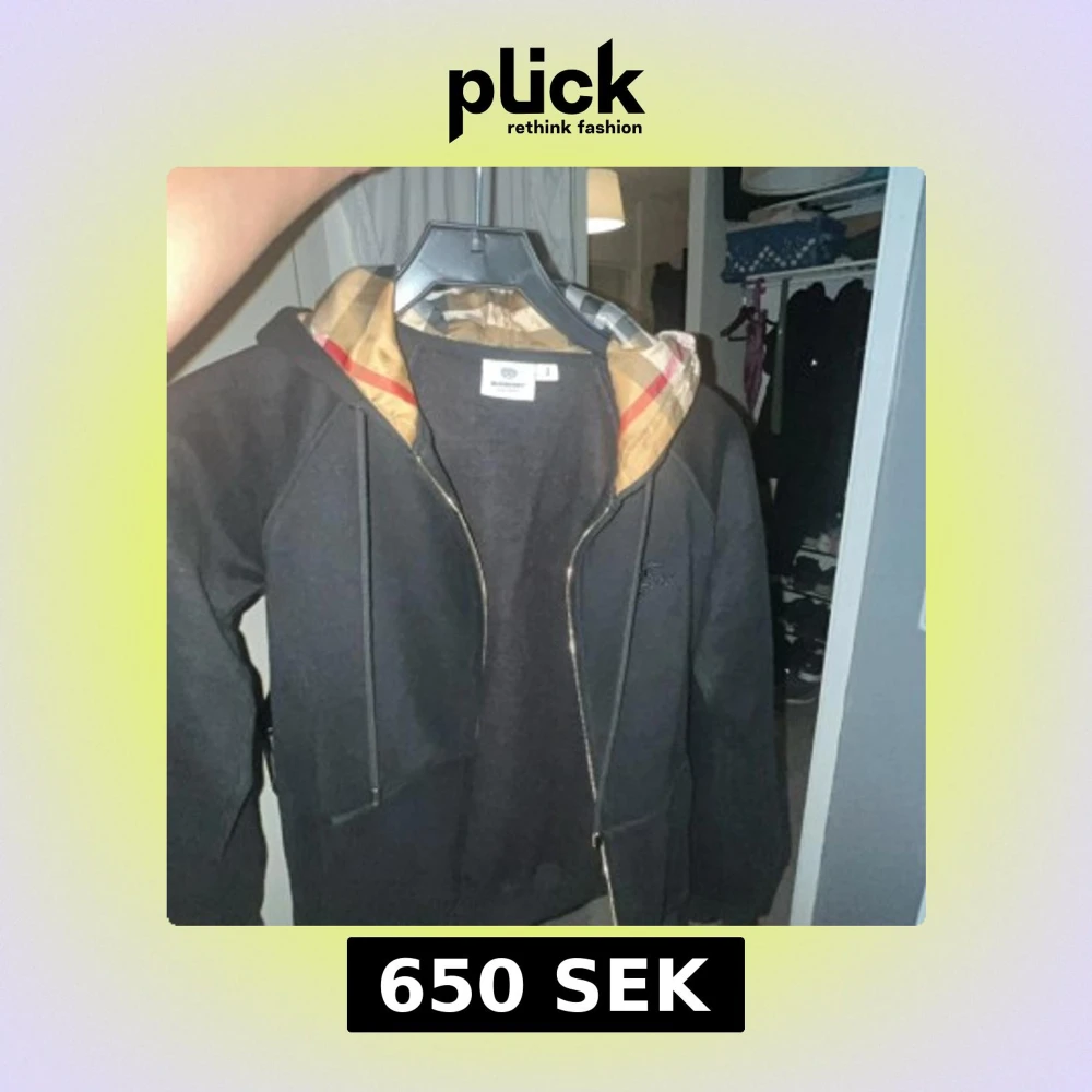 Svart Burberry hoodie med dragkedja