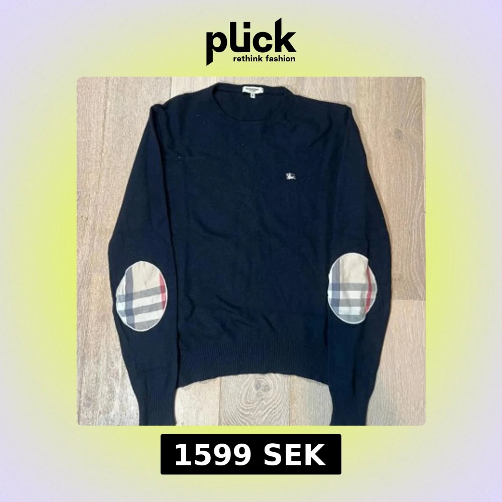 Snygg svart tröja från Burberry med klassiska rutiga armbågslappar. Tröjan har långa ärmar och en liten logga på bröstet. Perfekt för en stilren look. Skicka 8/10 Inga skador passar även M (tar även byten)