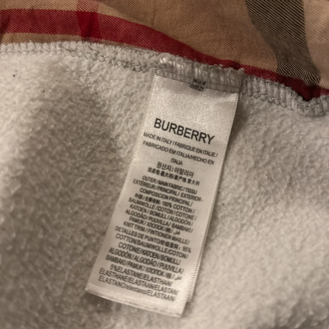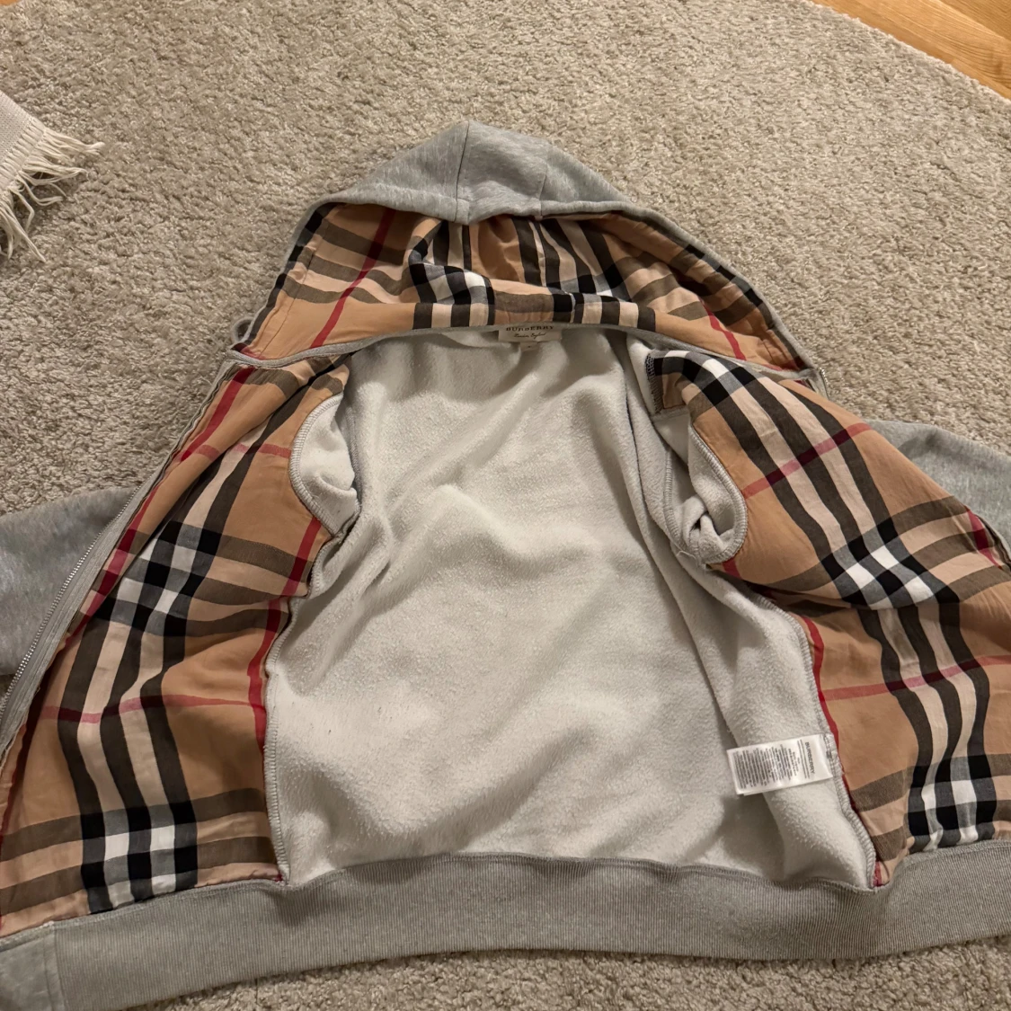 Grå Burberry hoodie med rutig huva