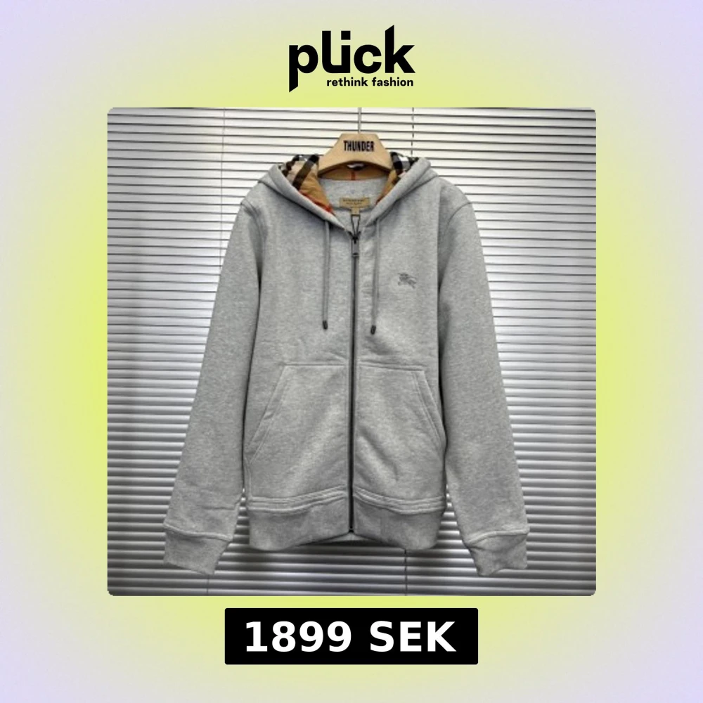 Grå hoodie från Burberry med klassiskt rutigt foder i huvan. Tröjan har dragkedja framtill, snörning i huvan och två stora fickor. Ikonisk Burberry-logga broderad på bröstet. Perfekt för dig som gillar stilren design med lyxig touch.